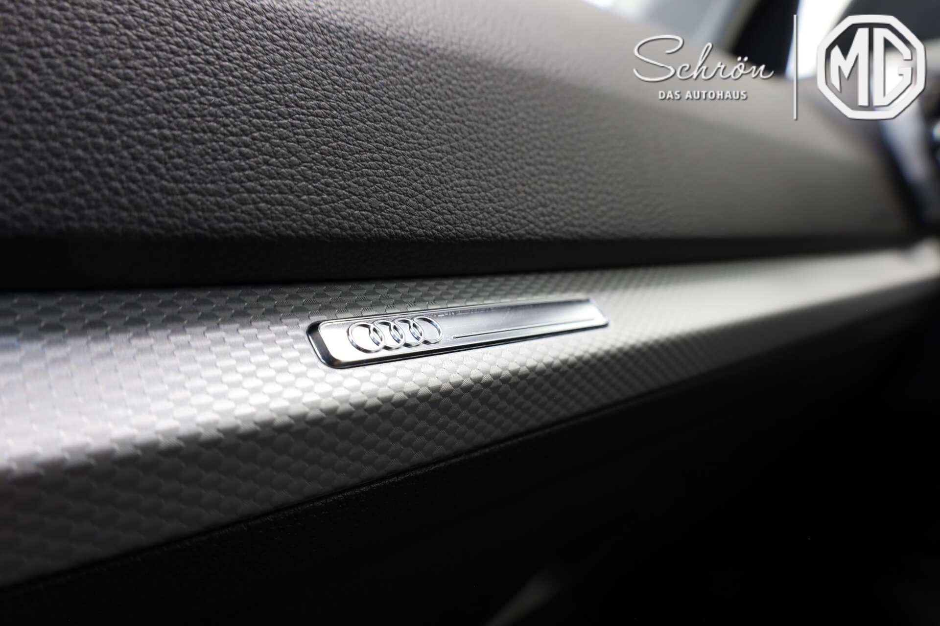 • Interieur: 4-Wege-Lendenwirbelstütze für die Vordersitze, Ablage- und Gepäckraumpaket mit USB-Ladeschnittstellen im Fond, Ambiente-Lichtpaket, Audi virtual cockpit plus, Beifahrersitz höheneinstellbar, Dachhimmel in Stoff in spezifischer Farbe, Dekoreinlagen Diamantlack silbergrau, Einstiegsleisten mit Aluminiumeinlegern vorn, beleuchtet, S-Schriftzug, Fußmatten vorn und hinten, Innenspiegel automatisch abblendend, rahmenlos, Interieurapplikationen Aluminiumoptik, Komfortmittelarmlehne vorn, Leder/Kunstleder-Kombination, Lederlenkrad 3-Speichen mit Multifunktion plus, Lendenwirbelstützen vorn, Rücksitzlehne, geteilt umklappbar, Sportsitze vorn, Steckdose (12V-Anschluß) im Koffer-/Laderaum, USB-Schnittstelle für Fondpassagiere