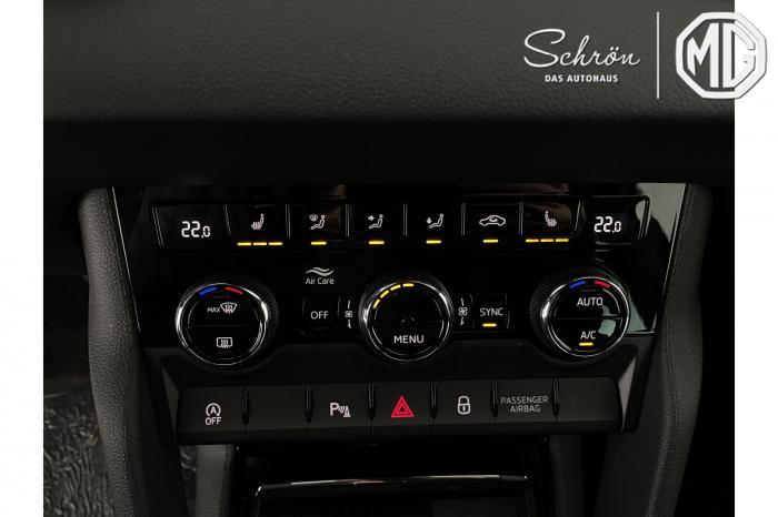 230-V-Steckdose und USB-C Anschluss, Bluetooth-Telefonvorbereitung, DAB-digitaler Radioempfang, Infotainment Navi 8, Phonebox mit induktiver Ladefunktion, Sprachsteuerung, USB-C Anschluss vorne, Wireless SmartLink, Ambientebeleuchtung, Fußraumbeleuchtung vorne/hinten, LED-Leseleuchten vorne/hinten, LED-Matrix Scheinwerfer [8G4] , LED-Tagfahrlicht, Licht- und Regensensor, Scheinwerferreinigungsanlage, Fensterheber elektrisch vorn und hinten, Sunset, 3-Speichen-Sport Multifunktionslenkrad in Leder, beheizbar mit Schaltwippen, Innenspiegel mit automatischer Abblendung, Lenkradheizung, Mittelarmlehne vorn, Textil- Fußmatten, Variabler Ladeboden im Kofferraum [PKP] , 2-Zonen CLIMATRONIC, Licht Paket, Park Paket, Technikpaket 8 Navi Plus, 18 Leichtmetallfelgen PROCYON schwarz, Alarm für KESSY, Fahrer Knieairbag, Fahrerairbag, Fahrerairbag und Beifahrerairbag, Isofix-Vorbereitung für die Rücksitze, Notruf (eCall), Seitenairbags vorne und Kopfairbags vorne/hinten, Beheizte Vordersitze, Design Interieur Sportline mit Thermoflux-Stoff in Schwarz, Fahrersitz mit Lendenwirbelstütze, Lendenwirbelstütze in den Vordersitzen [7P4] , Rücksitzlehne geteilt umklappbar, Sportsitze vorn, Anschlussgarantie 3 Jahre / 100.000km, 12-V-Steckdose, Adaptiver Abstandsassistent (ACC) bis 210 km/h [8T8] , Berganfahrassistent, Elektronische Parkbremse inkl. Auto Hold Funktion, Fahrmodusauswahl, Front Assistant - Warnsystem und Notbremsfunktion, Heckklappe mit elektr. Komfortöffnung [4E6], KESSY-Schlüsselloses Zugangs- und Start-Stopp-System, Müdigkeitserkennung, Parksensoren vorne/hinten, Reifendruckkontrolle, Rückfahrkamera, Spurhalteassistent, Verkehrszeichenerkennung, Virtuelles Cockpit, Zentralverriegelung mit Fernbedienung, Anhängekupplung schwenkbar mit Adapter, Außenspiegel elektrisch beheizbar, Außenspiegel elektrisch einstell- und beheizbar und anklappbar, Außenspiegel elektrisch einstellbar, Außenspiegel in Schwarz, Dachreling schwarz, EU-Fahrzeug mit Tageszulassung