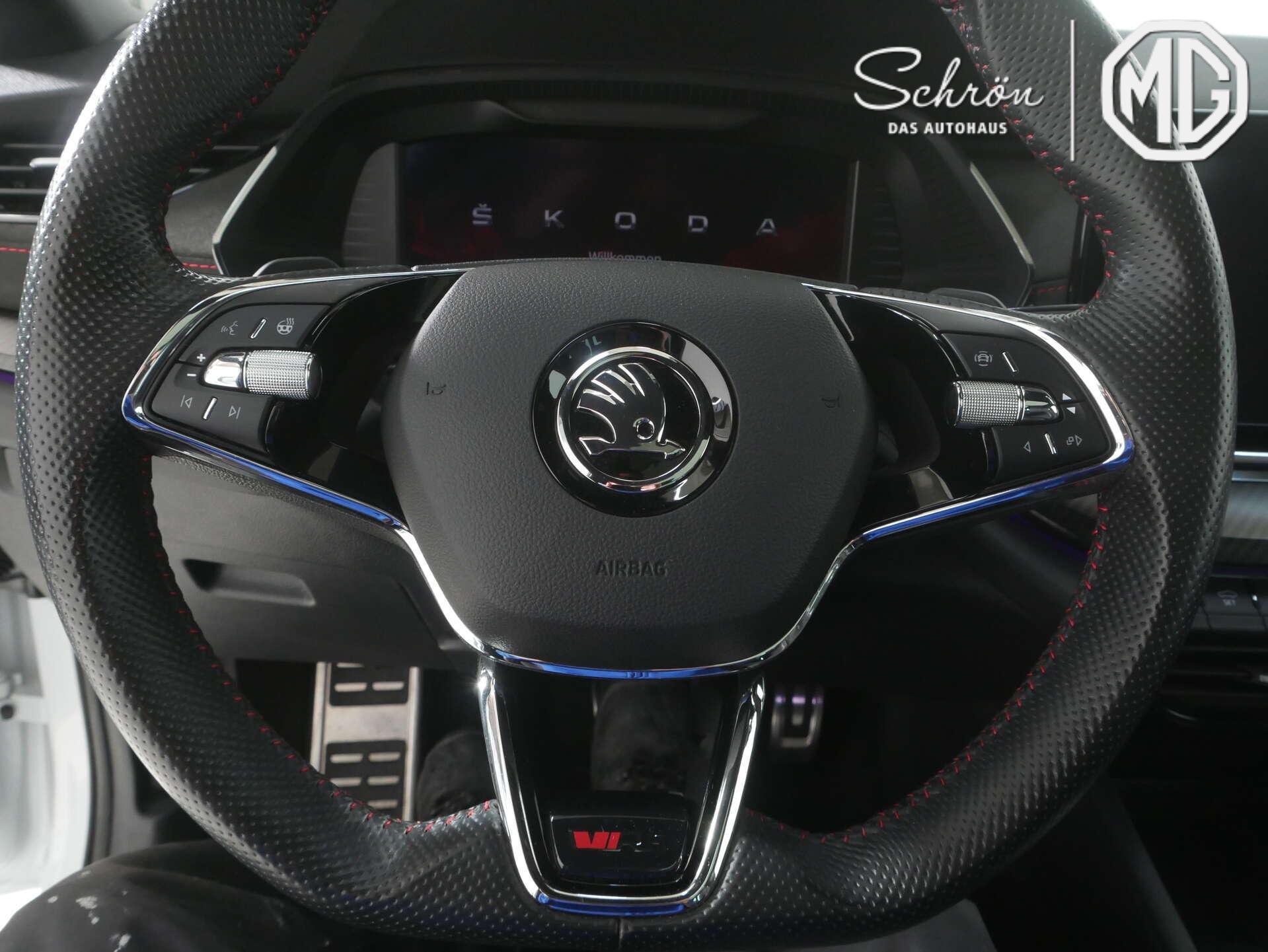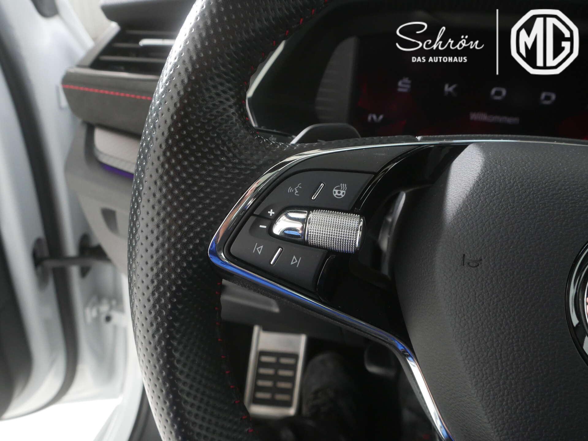• Komfort: "CRUISE CONTROL" - Geschwindigkeitsgerätmit Speedlimiter, "PARK ASSIST" - Parklenkassistent mit Einparkhilfe (Parksensoren vorn und hinten), "REAR VIEW", Beheizbare Vorder- und äußere Rücksitze, Beheizbare Windschutzscheibe, Berganfahrassistent, Dynamische und automatische Leuchtweitenregulierung, Dynamischer Fernlichtassistent (Dynamic Light Assist), Elektrisch einstellbare Ergo-Sportsitze vorn und Microfaser-Innenausstattung, Elektrisch einstellbare Vordersitze mit manuell herausziehbarer Beinauflagenverlängerung, Elektrische Fensterheber vorn und hintenmit Komfortfunktion und Einklemmschutz, Fahrprofilauswahl, Infotainment Online, Infotainmentdisplay 10", Klimaanlage Climatronic (3-Zonen) mit Allergenfilter & Geruchsfilter, Ladekabel für AC-Ladestationen (Mode-3-Ladekabel, Typ 2, 16A), Memoryfunktion sowie Spurwechsel- und Ausparkassistent, Notladekabel (Mode-2-Ladekabel, Schuko, 10A), Progressive Lenkung, Schlüsselloses Schlie - und Startsystem "Keyless Advanced" ohne Safesicherung, Soundaktor, Sprachsteuerung, Spurwechsel- und Ausparkassistent sowie Ausstiegswarner (Side Assist)