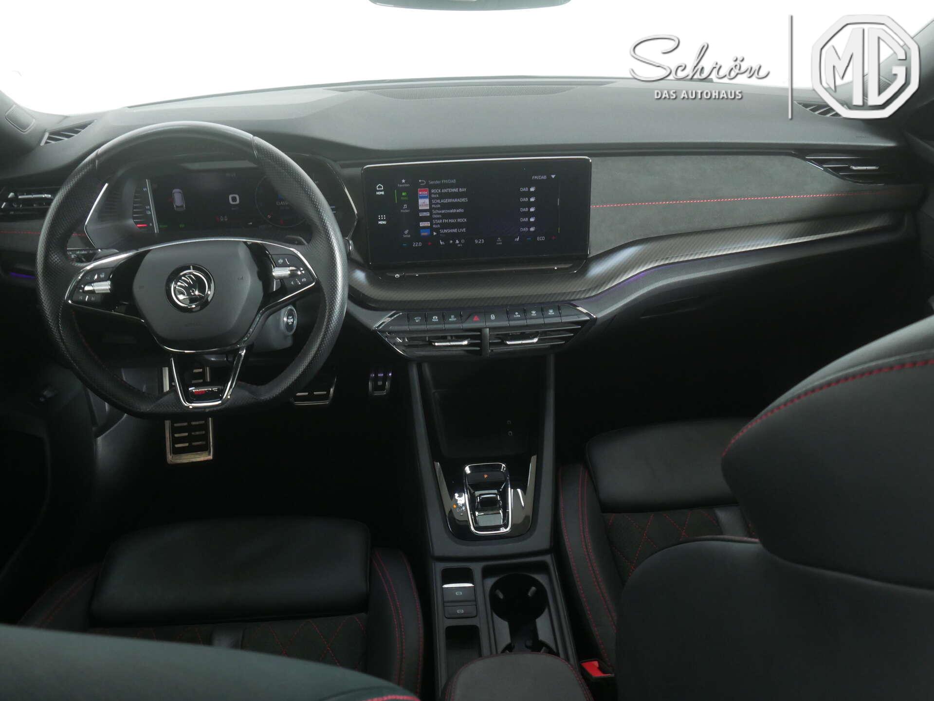 • Interieur: 12 Volt-Steckdose im Gepäckraum, 2 USB-Anschlüsse vorn, USB-Ladeanschlussam Rückspiegelfuß sowie 2 USB-Ladeanschlüsse hinten, 230 Volt-Steckdose (bis 150 Watt), 3-Speichen-Sportmultifunktionsleder- lenkrad mit dem Heizung und Schaltwippenfür das DSG, 8 Lautsprecher, Ablagefächer im Gepäckraum, Alu Pedalen, Ambientebeleuchtung im Innenraum vorn und Logo-Projektor in den Vordertüren, Automatisch abblendbarer Innenspiegel, Dachhimmel schwarz, Dekorleiste in Dark-Carbon, FPK-Medium, Integrierte Kopfstützen vorn, Komfortsitze vorn, Lehnenentriegelung der Rücksitzlehne im Kofferraum, Lendenwirbelstützen vorn elektrisch einstellbar mit Massagefunktion, Manuelle Heckklappenbedienung, Mittelarmlehne vorn, Rücksitzlehne (geteilt umlegbar) mit Mittelarmlehne sowie Durchlademöglichkeit, Sitzbezüge in Microfaser und Leder kombiniert mit hochwertigen Materialien, Sonnenblenden mit beleuchtetem Make-up-Spiegel auf Fahrer- und Beifahrerseite, Sonnenschutzrollos in den hinteren Türen sowie Multifunktionsablage im Gepäckraum, Zierleiste in Piano-Schwarz an den Luftauströmern vorn