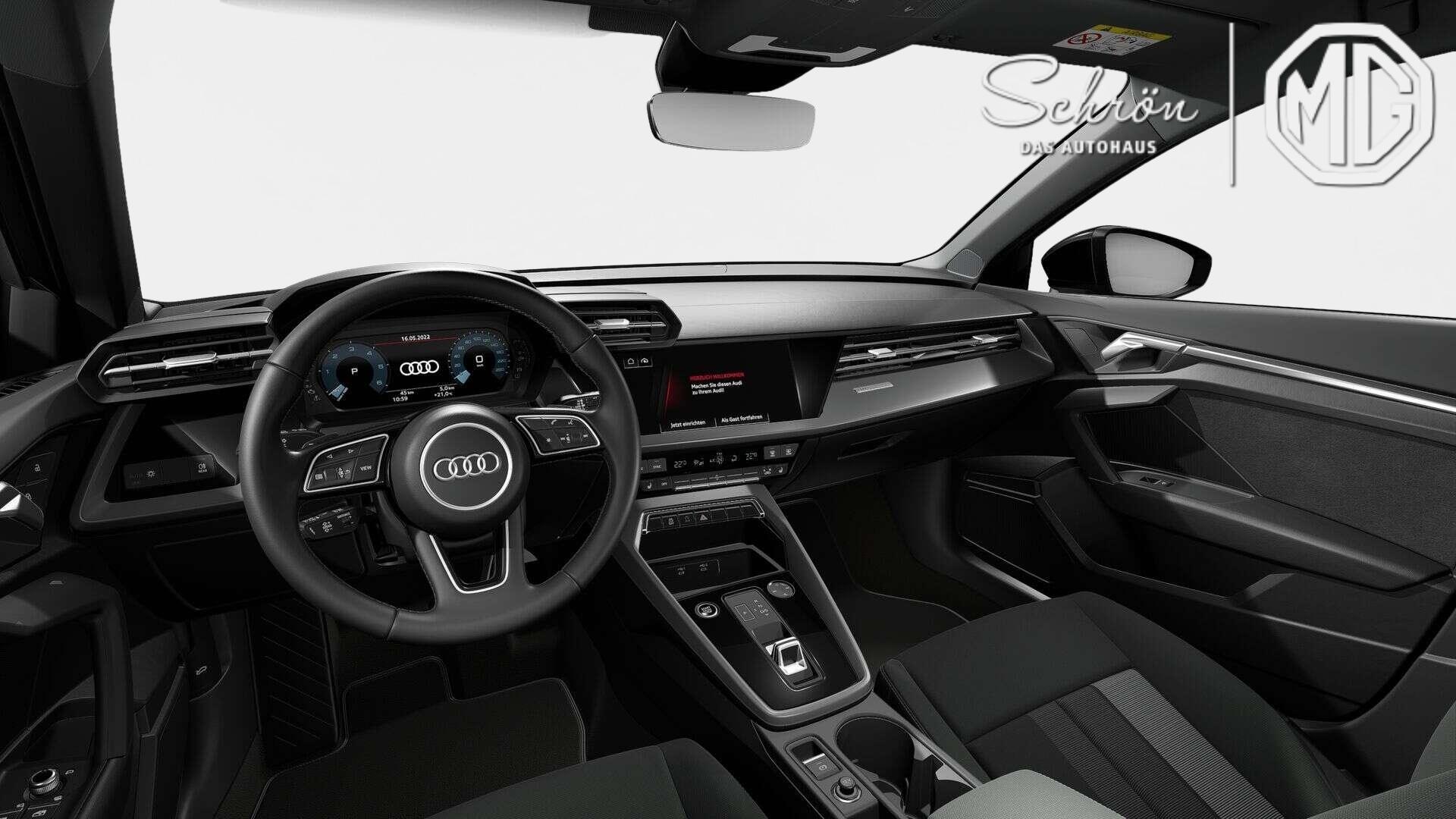 • Interieur: 12-Volt-Steckdose, 4-Wege-Lendenwirbelstütze für die Vordersitze, Aluminiumoptik im Interieur, Ambiente-Lichtpaket, Audi virtual cockpit, Dachhimmel in Stoff in spezifischer Farbe, Dekoreinlagen Seideneffektlack platingrau, Einstiegsleisten mit Aluminiumeinlegern vorn, Fußmatten vorn und hinten, Innenspiegel automatisch abblendend, rahmenlos, Lederlenkrad 3-Speichen mit Multifunktion plus und Schaltwippen, Mittelarmlehne vorn, Rücksitzlehne, geteilt umklappbar, Vordersitze manuell einstellbar