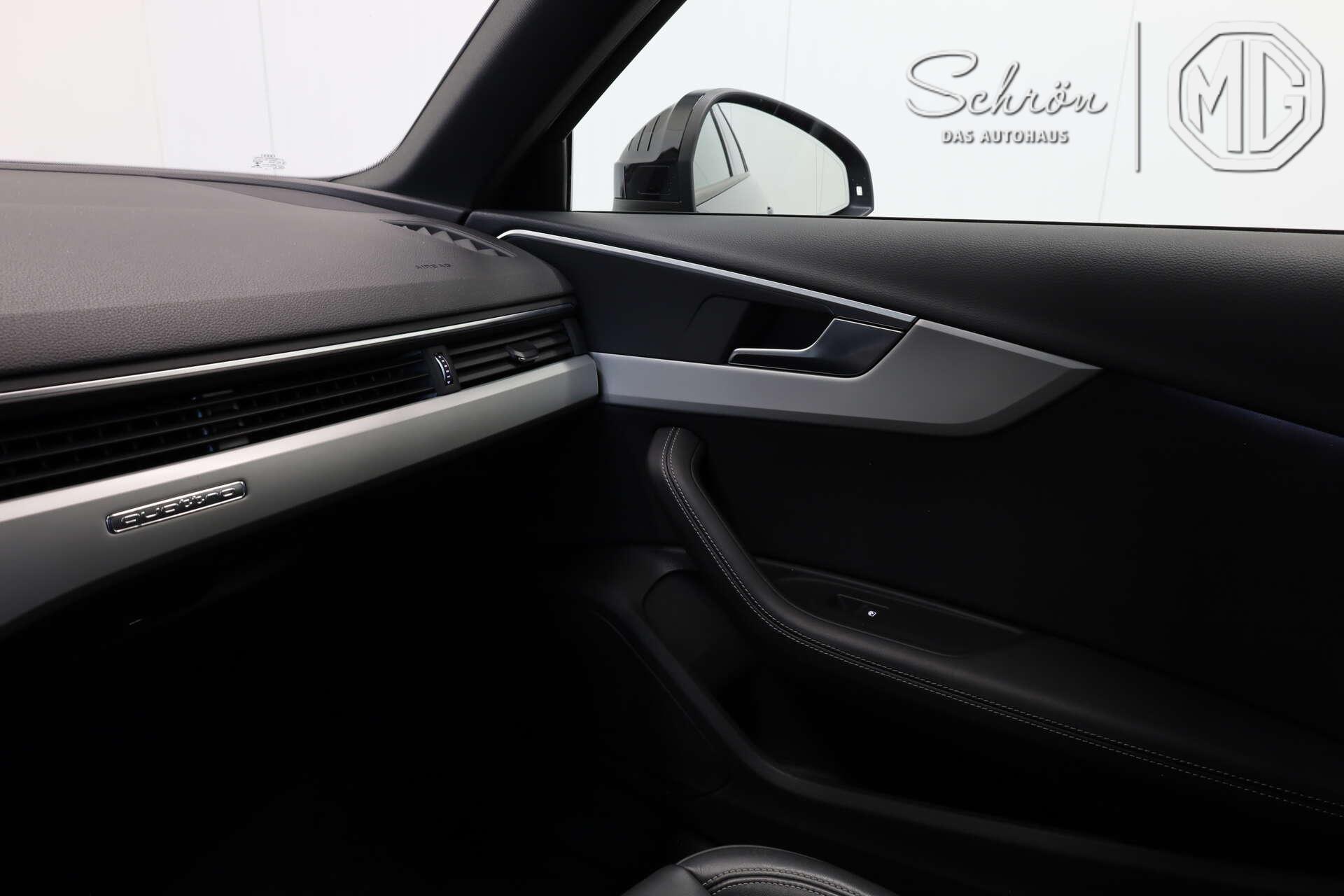 • Interieur: 4-Wege-Lendenwirbelstütze für die Vordersitze, Akzentflächen schwarz matt, Ambiente-Lichtpaket, Audi virtual cockpit plus, Dachhimmel in Stoff schwarz, Einstiegsleisten mit Aluminiumeinleger vorne, mit allroad-Schriftzug, Fußmatten vorn und hinten, Innenausstattung: Dekoreinlagen Diamantlack silbergrau, Innenspiegel automatisch abblendend, rahmenlos, Interieurelemente in Kunstleder, Komfortmittelarmlehne vorn, Leder/Kunstleder mono.pur 550-Kombination, Lederlenkrad 3-Speichen mit Multifunktion plus, Rücksitzlehne, geteilt umklappbar, Sonnenschutzrollo manuell für die Türscheiben hinten