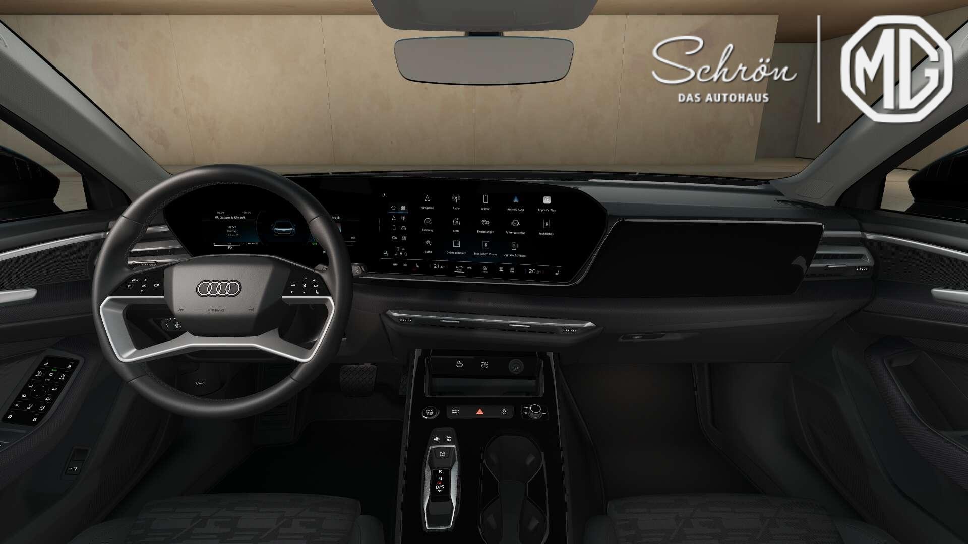 • Audio & Kommunikation: Audi connect Navigation & Infotainment, Audi connect Notruf & Service mit Audi connect Remote & Control, Audi Soundsystem, Digitaler Radioempfang, LTE-Unterstützung für Audi phone box, Navigationsgerät-High, Telefonablage mit induktiver Ladefunktion und Mobilfunk-Koppelantenne