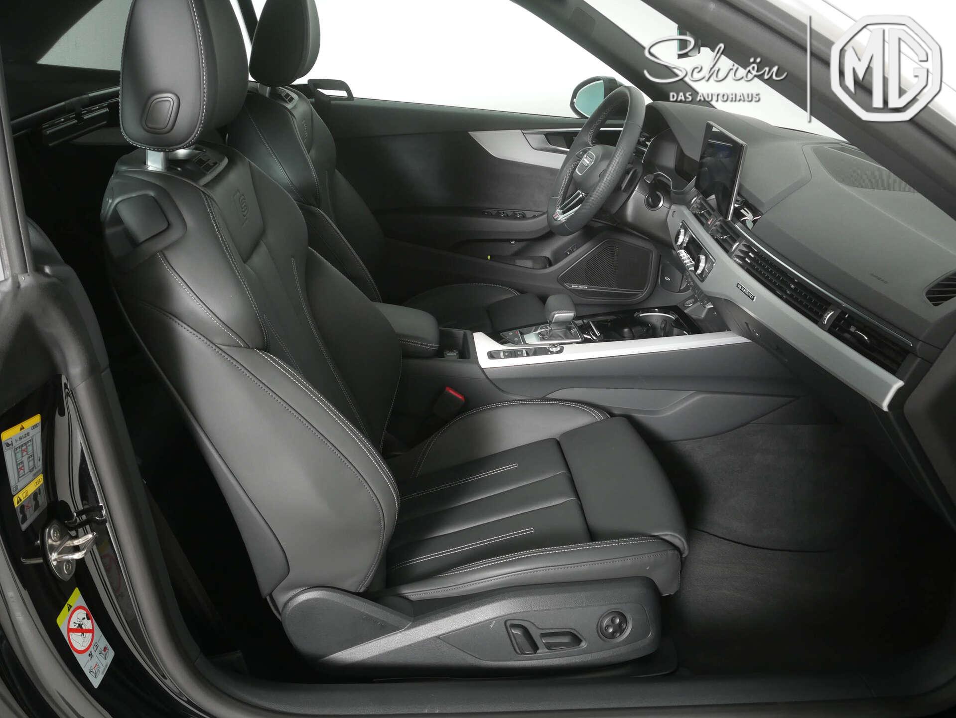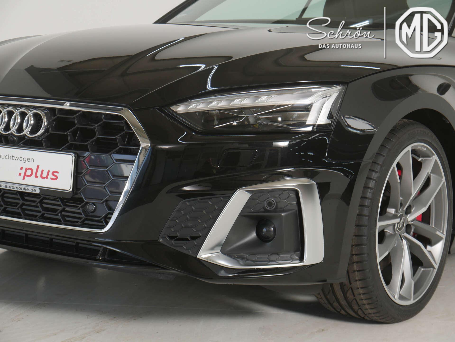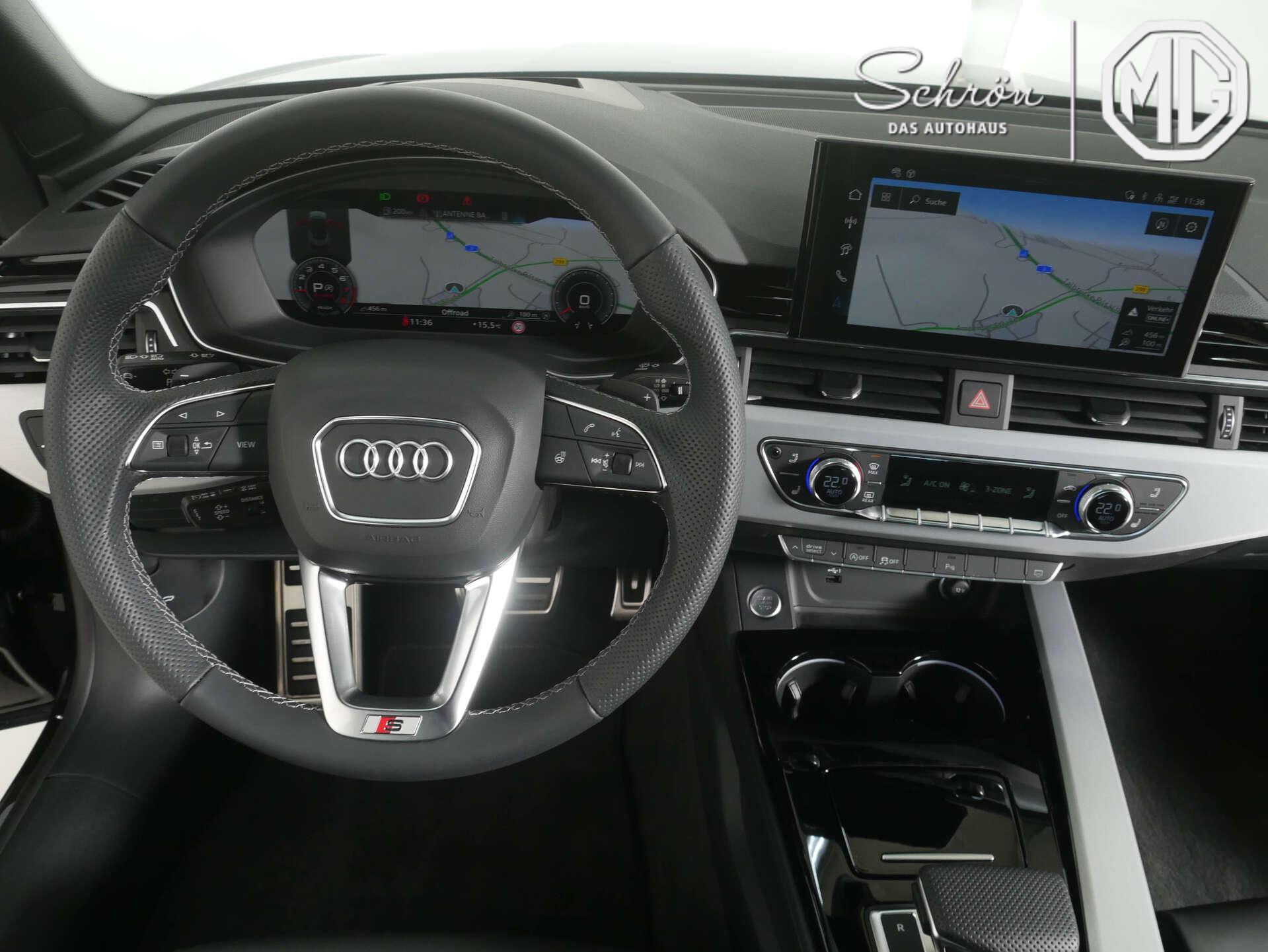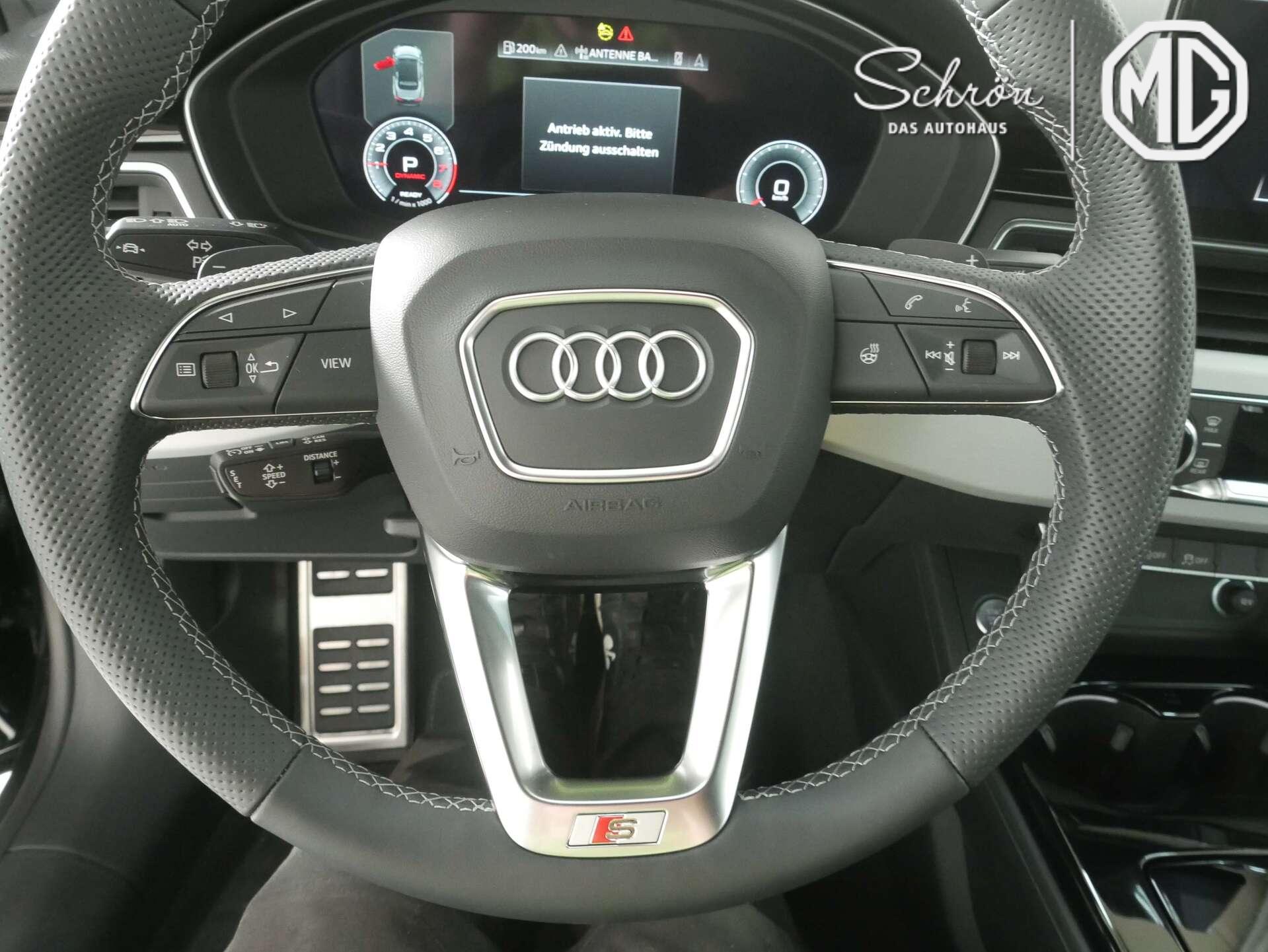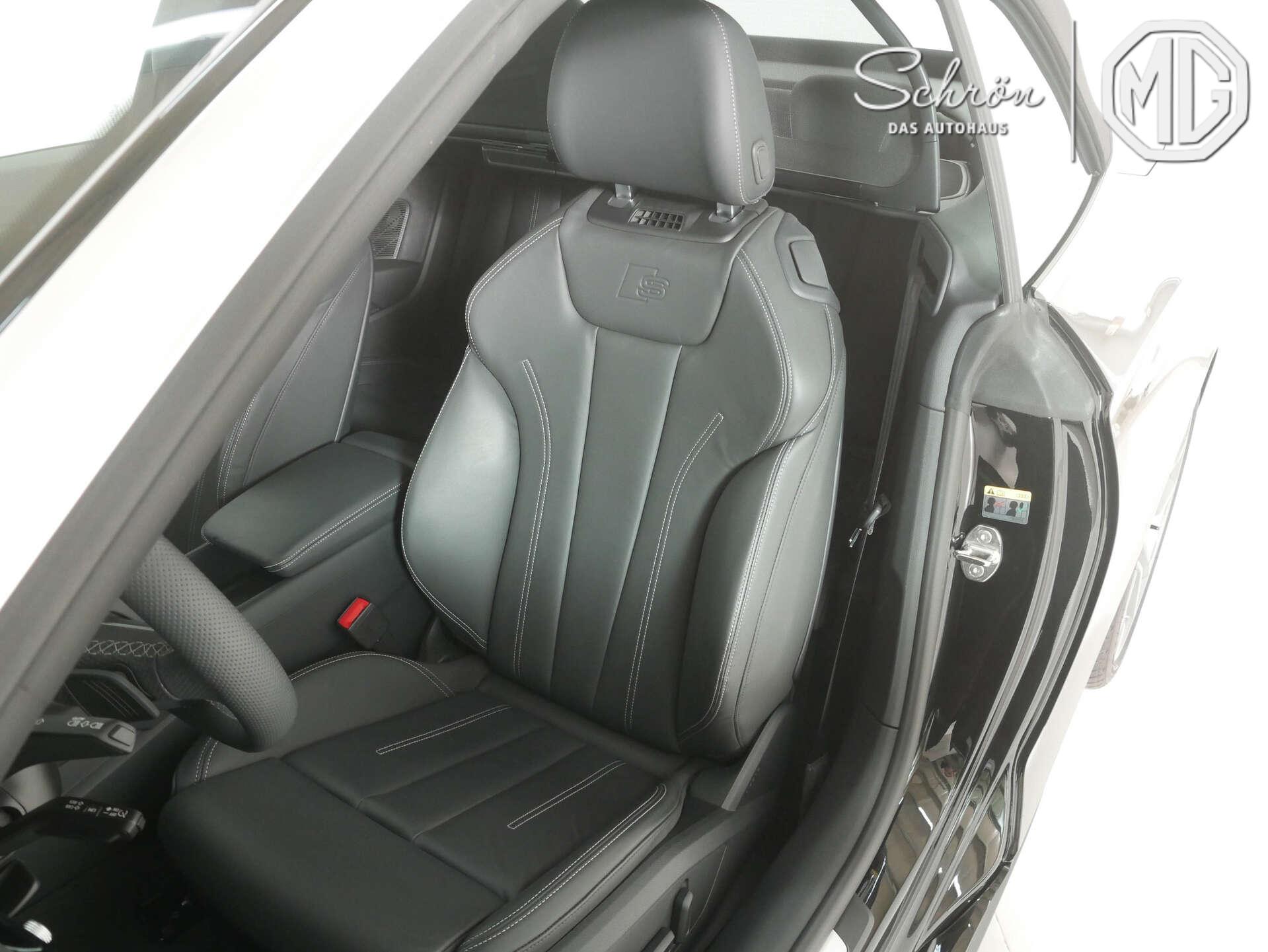 • Interieur: 4-Wege-Lendenwirbelstütze für die Vordersitze, Akzentflächen schwarz glänzend, Ambiente-Lichtpaket plus, Audi virtual cockpit plus, Dachhimmel in Stoff in spezifischer Farbe, Dekoreinlagen Aluminium matt gebürstet, Einstiegsleisten mit Aluminiumeinlegern vorn, beleuchtet, S-Schriftzug, Fußmatten vorn und hinten, Head-up Display, Innenspiegel automatisch abblendend, rahmenlos, Komfortmittelarmlehne vorn, Leder Feinnappa mit S-Prägung, Lederlenkrad im 3-Speichen-Design mit Multifunktion plus und Lenkradheizung, Pedalerie und Fußstütze in Edelstahl, Sportsitze vorn, USB-Ladeschnittstellen im Fond