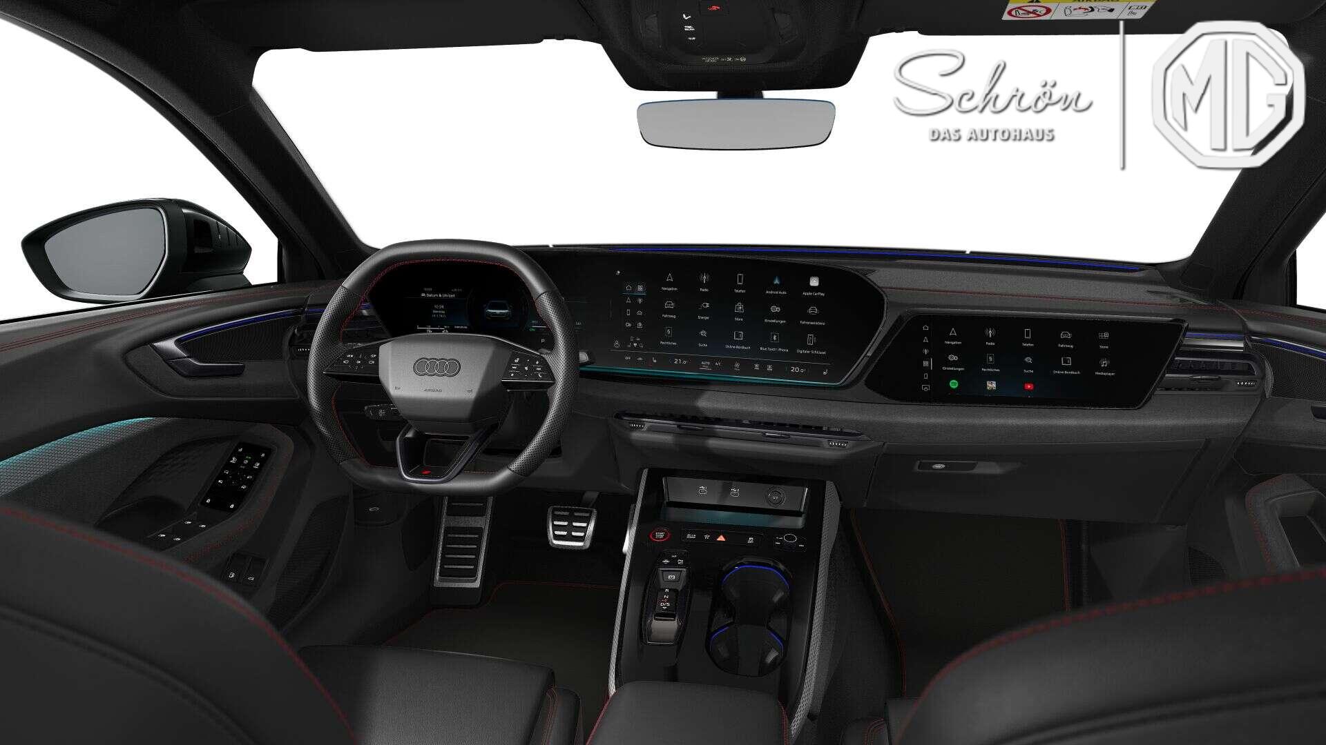 • Komfort: 3-Zonen-Komfortklimaautomatik, Adaptiver Fahrassistent plus, Adaptiver Geschwindigkeitsassistent, Anschlussgarantie 3 Jahre max. 100.000 km, Audi Application Store und Smartphone-Interface, Audi drive select, Aufmerksamkeits- und Müdigkeitserkennung, Außenspiegel elektr. verstell-, heiz- und anklappbar, mit Abblendautomatik und Bordsteinautomatik, Außenspiegel elektrisch einstell-, beheizbar und anklappbar, beidseitig automatisch abblendend, Außenspiegel mit Bordsteinautomatik, rechts, Digitaler Schlüssel, Einparkhilfe plus mit Distanzanzeige, FOD Funktionen online verfügbar, Garagentoröffner, Gepäckraumklappe elektrisch öffnend und schließend, Kamerabasierte Verkehrszeichenerkennung, Kamerasystem Umgebungskamera, Komfortschlüssel ohne Safelock, Ladekabel Mode 3 für öffentliches Laden 22 kW (AC), Lenkradeinstellung elektrisch, Matrix LED-Scheinwerfer, Matrix-Funktion, Parkassistent plus, Sitzheizung vorn und hinten, Sonnenschutzverglasung abgedunkelt, Spurwechsel- und Ausstiegswarnung, Querverkehrassistent hinten und Abbiegeassistent hinten, S-Sportfahrwerk mit Dämpferregelung, Umgebungskameras, Verkehrszeichenbasierter Geschwindigkeitsbegrenzer