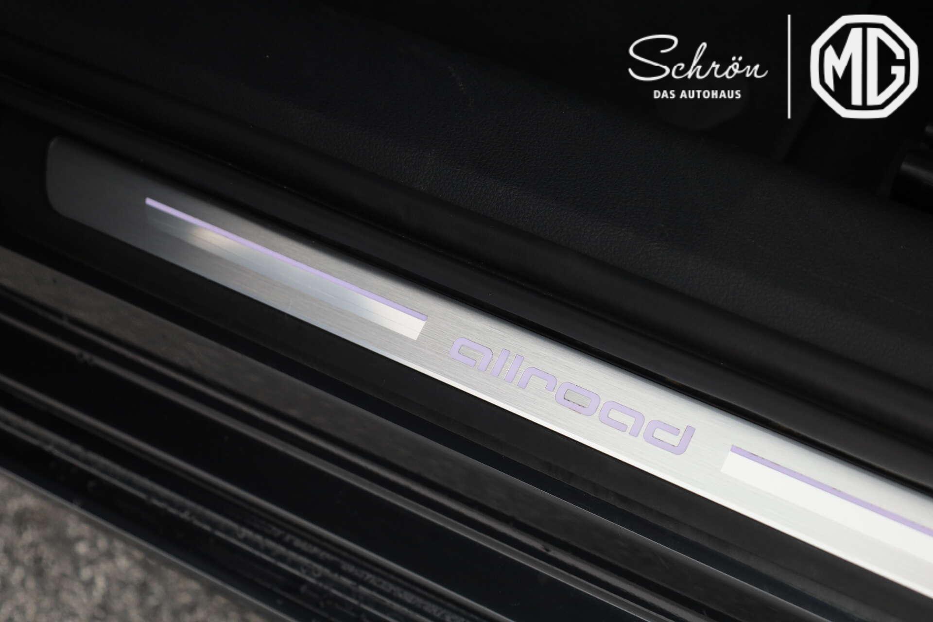 • Interieur: 4-Wege-Lendenwirbelstütze für die Vordersitze, Ambiente-Lichtpaket plus, Audi virtual cockpit plus, Bedientasten schwarz glänzend mit haptischem Feedback und Aluminiumoptik Interieur, Dachhimmel in Stoff schwarz, Dekoreinlagen Aluminium Dyade jangalsilber, Einstiegleisten mit Aluminiumeinlegern vorn und hinten, beleuchtet, vorn mit allroad-Schriftzug, Fußmatten vorn und hinten, Innenspiegel automatisch abblendend, rahmenlos, Interieurelemente oben und unten in Leder, Lederlenkrad, 3-Speichen-Design, mit Multifunktion plus, Schaltwippen und Lenkradheizung, Mittelarmlehne vorn, Rücksitzlehne, geteilt umklappbar, Sonnenblende auf Fahrer- und Beifahrerseite, Stoff Essenz/mono.pur550-Kombination, USB-Anschlüsse mit Ladefunktion im Fond, Vordersitze manuell einstellbar, Wählhebelknauf in Leder