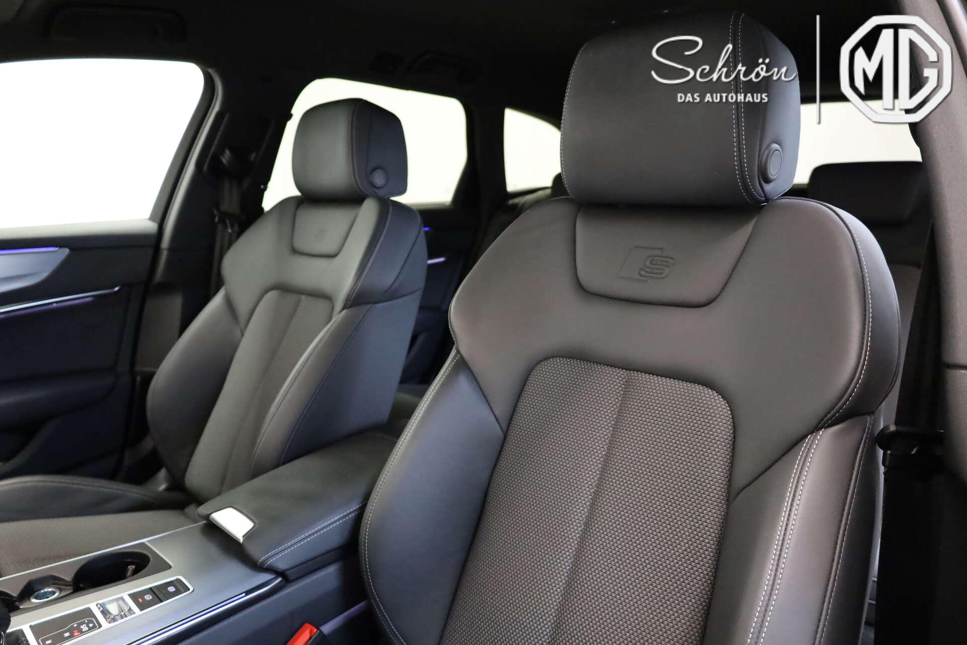 • Interieur: 4-Wege-Lendenwirbelstütze für die Vordersitze, Ambiente-Lichtpaket plus, Audi virtual cockpit plus, Bedienelemente schwarz matt, Dachhimmel in Stoff schwarz, Dekoreinlagen Aluminium matt gebürstet dunkel, Einstiegsleisten mit Aluminiumeinlegern vorne und hinten, beleuchtet, vorne mit S-Schriftzug, Fußmatten vorn und hinten, Innenspiegel automatisch abblendend, rahmenlos, Komfortmittelarmlehne vorn, Lederlenkrad 3-Speichen mit Multifunktion und Schaltwippen, Pedalerie und Fußstütze in Edelstahl, Rücksitzlehne, geteilt umklappbar, Sonnenschutzrollo manuell für die Türscheiben hinten, Sportsitze vorn, Stoff Sequenz/Leder-Kombination mit S-Prägung, USB-Anschlüsse mit Ladefunktion im Fond