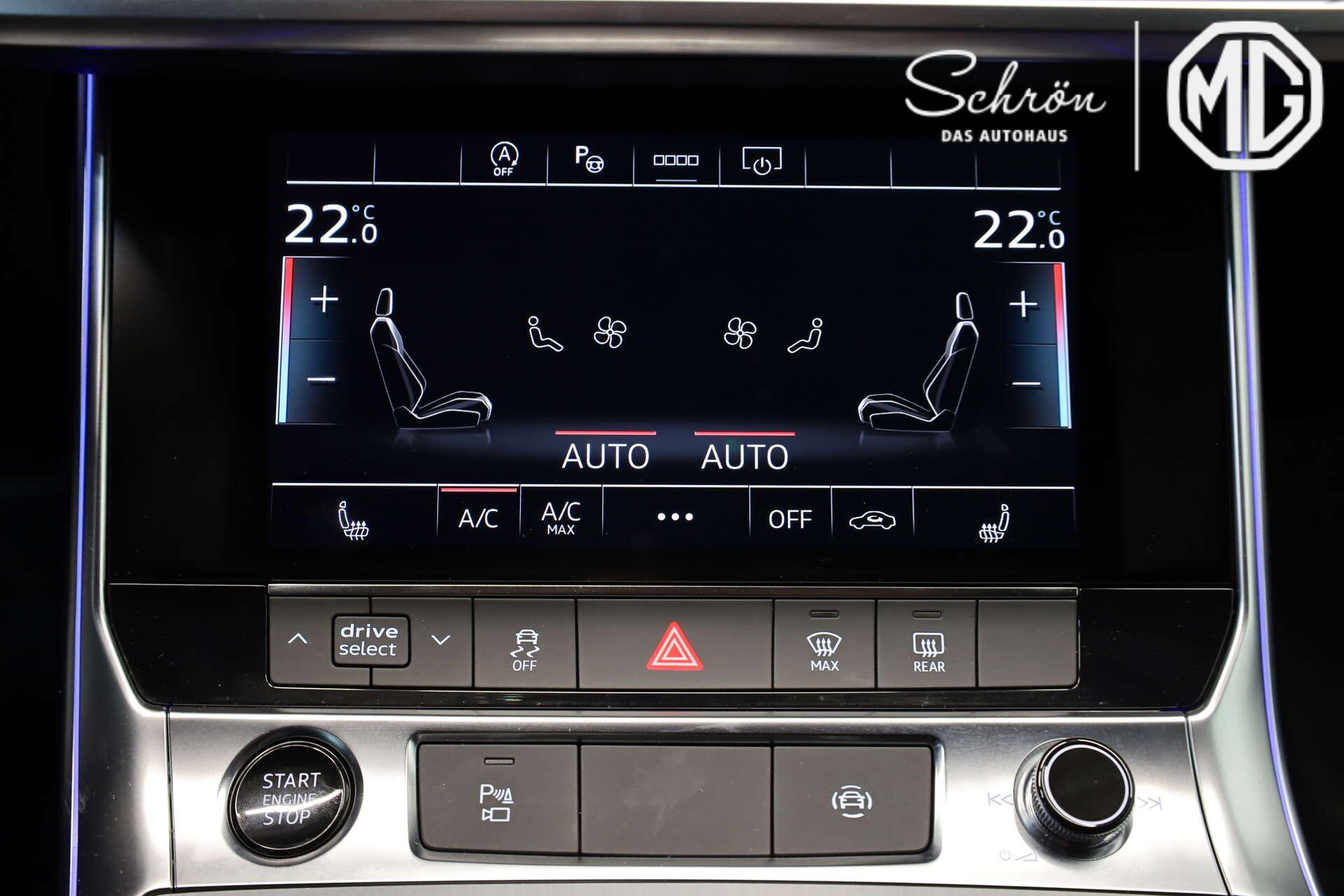 • Komfort: 4-Zonen-Komfortklimaautomatik, Adaptive Scheibenwischer, beheizt, adaptiver Fahrassistent mit Notfallassistent, adaptiver Geschwindigkeitsassistent mit Geschwindigkeitsbegrenzer, Effizienz-, Ausweich- und Abbiegeassistent, Audi drive select, Audi pre sense basic, Außenspiegel elektrisch einstell-, beheiz- und anklappbar, beidseitig automatisch abblendend, mit Memory-Funktion, Einparkhilfe plus vorn, seitlich und hinten, akustisch und optisch mit Umgebungsanzeige, Fahrassistenz-System: Abbiege-Assistent links, Fahrassistenz-System: Prädiktiver Effizienz-Assistent, Fernlichtassistent, Frontscheibe in Klimakomfort- und Akustikverglasung drahtlos beheizbar, Gepäckraumklappe, elektrisch öffnend und schließend, Geschwindigkeitsbegrenzungsanlage, Kamerabasierte Verkehrszeichenerkennung, Komfortschlüssel mit sensorgesteuerter Gepäckraumentriegelung, mit Safelock, Komfortschlüssel mit sensorgesteuerter Heckklappenentriegelung inkl. (öffnen + schliessen), Komfortschlüssel mit sensorgesteuerter Heckklappenentriegelung und Diebstahl-Warnanlage inkl. (öffnen + schliessen), Lenkradeinstellung, elektrisch, Parkassistent mit Einparkhilfe plus, Rückfahrkamera, Sitze vorn elektr. verstellbar (links mit Memory), Sitzheizung vorn, Sonnenblenden vorn, verschiebbar, Sonnenschutzverglasung abgedunkelt, Vorbereitung für Functions on Demand, Vordersitze elektrisch einstellbar mit Memory-Funktion für den Fahrersitz
