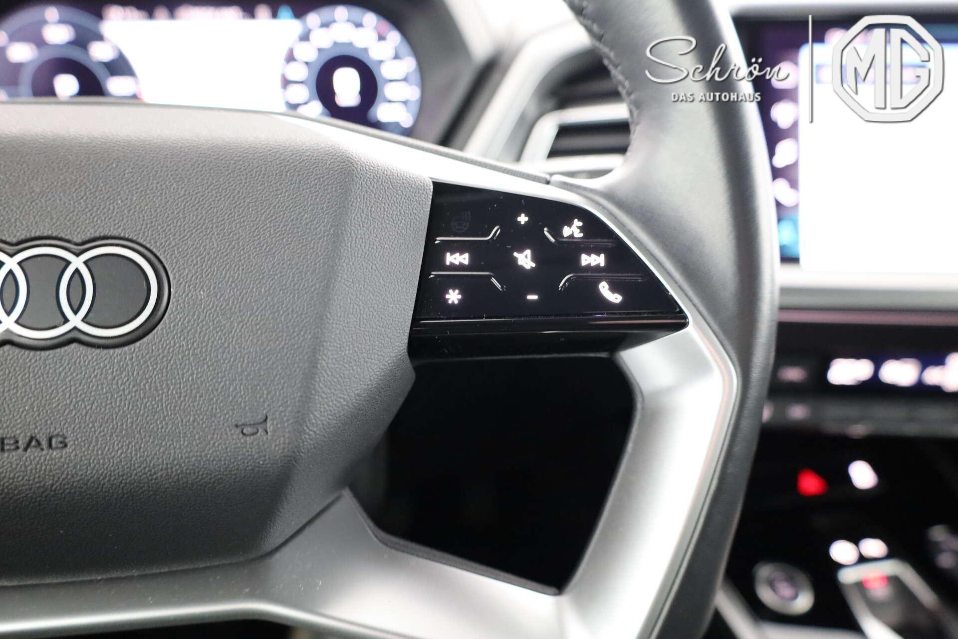 • Komfort: Audi connect Notruf & Service, Audi connect Remote & Control für MMI plus und pro, Außenspiegel elektrisch einstell-, beheiz- und anklappbar, beidseitig automatisch abblendend, Einparkhilfe plus, Fernlichtassistent, Frontscheibe in Wärmeschutzverglasung, Geschwindigkeitsregelanlage mit Geschwindigkeitsbegrenzer, Hochvolt-Batterie 82 kWh (brutto), kamerabasierende Verkehrszeichenerkennung, Klimaautomatik, Komfortpaket, On-board-Ladesteckdose bis 11 kW (AC), Sitzheizung vorn