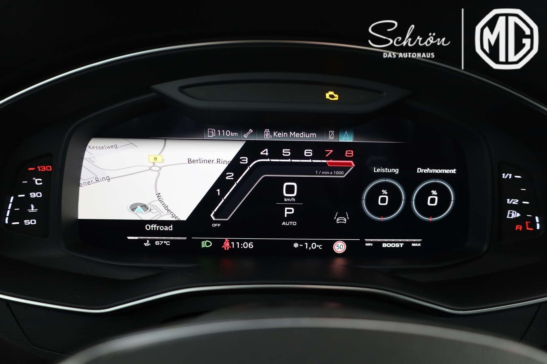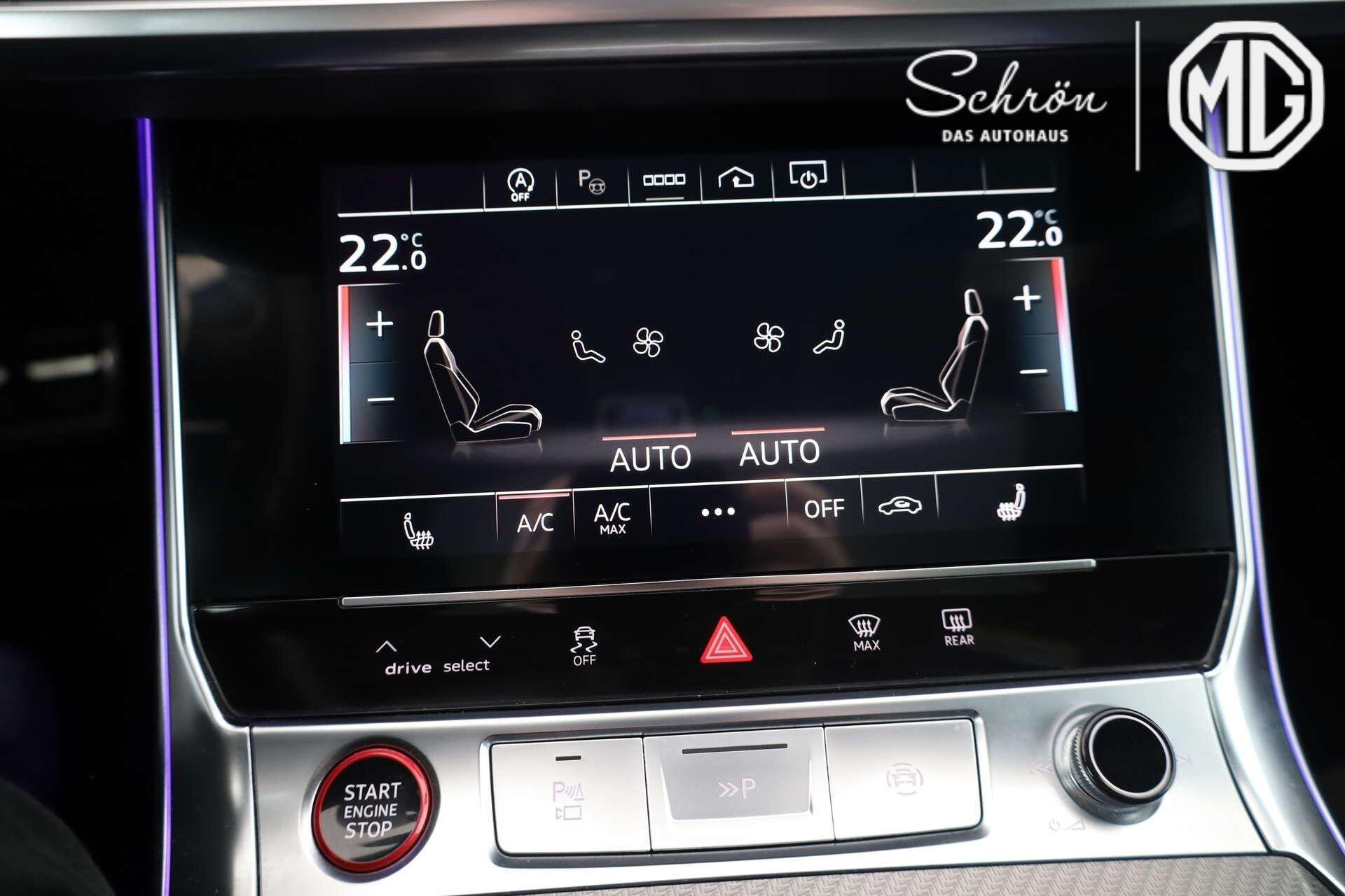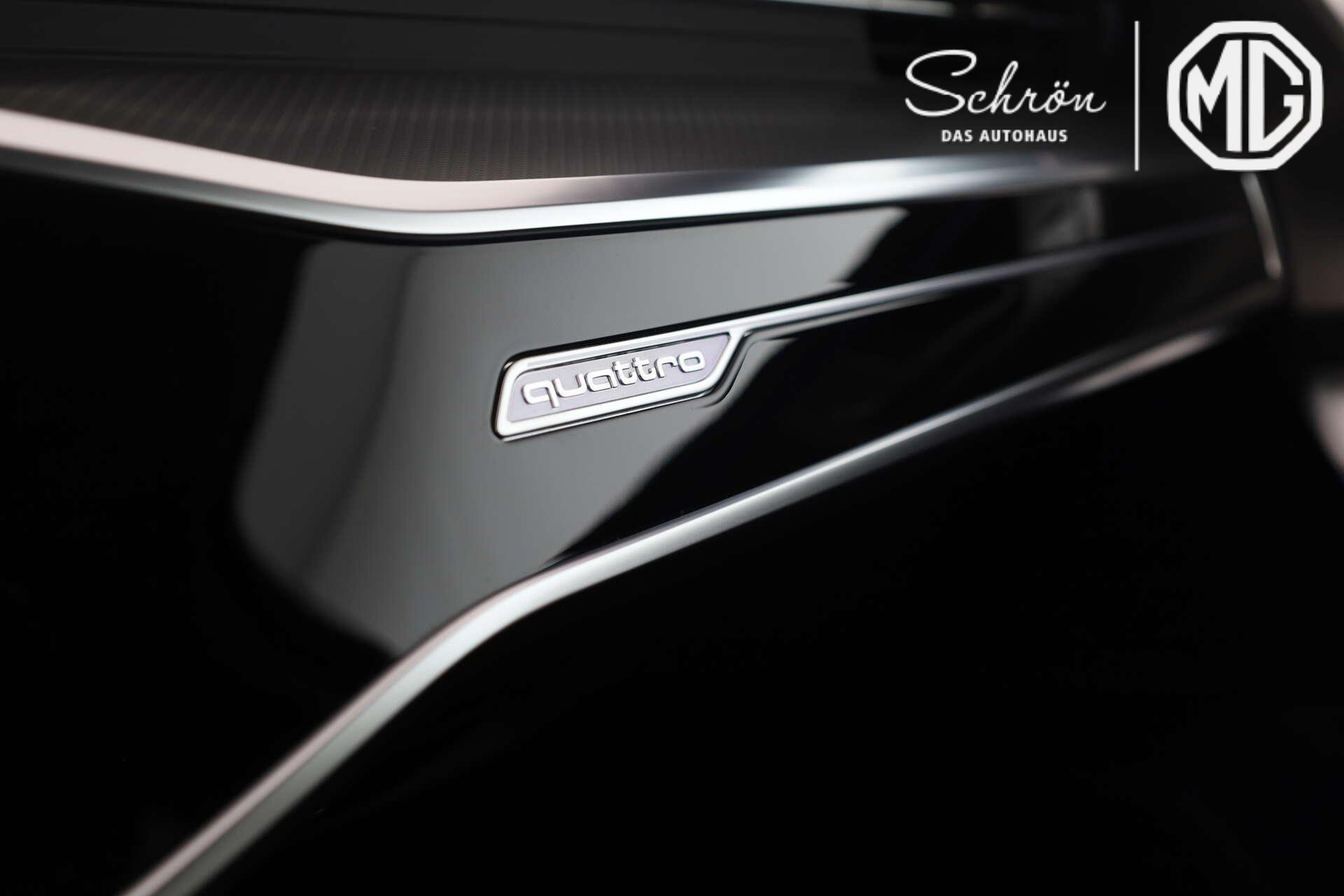 • Komfort: 4-Zonen-Komfortklimaautomatik, adaptiver Fahrassistent mit Notfallassistent, adaptiver Geschwindigkeitsassistent mit Geschwindigkeitsbegrenzer, Effizienz-, Ausweich- und Abbiegeassistent, Audi drive select, Audi pre sense rear, Audi virtual cockpit plus, Außenspiegel elektrisch einstell-, beheiz- und anklappbar, beidseitig automatisch abblendend, mit Memory-Funktion, Frontscheibe in Klimakomfort- und Akustikverglasung, drahtlos beheizbar, Garagentoröffner, Gepäckraumklappe, elektrisch öffnend und schließend, Geschwindigkeitsbegrenzungsanlage, HD Matrix-LED-Scheinwerfer mit Audi Laserlicht, dynamischer Lichtinszenierung und dynamischem Blinklicht (Paketinhalt), kamerabasierende Verkehrszeichenerkennung, Komfortschlüssel, Lenkradeinstellung, elektrisch, Multifunktionskamera, Parkassistent mit Einparkhilfe plus, Parkassistent plus, Privacy-Verglasung (Scheiben abgedunkelt), Sitzheizung vorn und hinten, Sonnenblende auf Fahrer- und Beifahrerseite, ausziehbar, Umgebungskameras, Vorbereitung für Functions on Demand, Vordersitze, elektrisch einstellbar, mit Memory-Funktion für den Fahrersitz