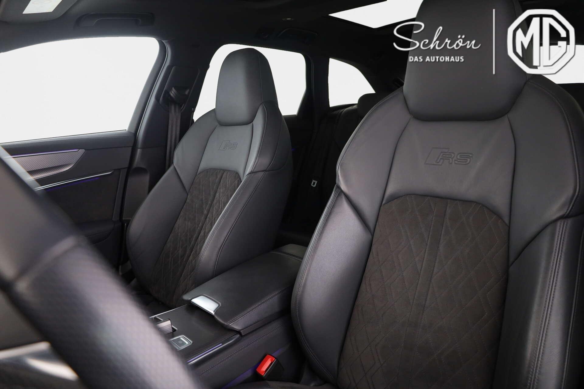 • Interieur: 4-Wege-Lendenwirbelstütze für die Vordersitze, Alcantara/Leder mit Rautensteppung und RS-Prägung, Ambiente-Lichtpaket plus, Außenspiegelgehäuse in Schwarz, Bedientasten schwarz glänzend mit haptischem Feedback und Aluminiumoptik Interieur, Dachhimmel in Stoff schwarz, Dekoreinlagen Aluminium Race anthrazit, Einstiegs-LED mit Audi Sport-Projektion vorn und hinten, Fußmatten vorn und hinten, Innenspiegel automatisch abblendend, rahmenlos, Interieurelemente oben und unten in Kunstleder, Komfortmittelarmlehne vorn, Lederlenkrad im 3-Speichen-Design mit Multifunktion plus und Lenkradheizung, Pedalerie und Fußstütze in Edelstahl, RS-Einstiegleisten, RS-Wählhebelknauf in perforiertem Leder, Rücksitzlehne, geteilt umklappbar, Sportsitze plus vorn mit Alcantara-Leder-Kombination