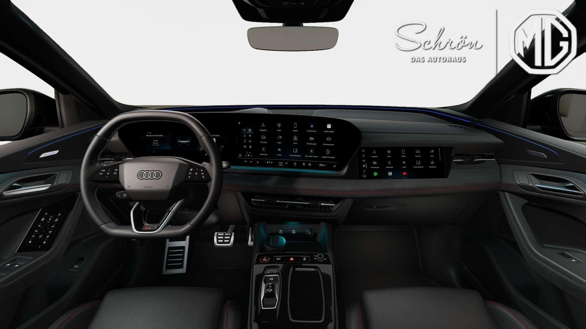 • Interieur: Akzentflächen und Bedientasten schwarz glänzend, Ambiente-Lichtpaket plus, Audi virtual cockpit plus, Augmented-Reality-Head-up-Display, Bedienelemente schwarz glänzend, Dachhimmel Stoff schwarz, Dekoreinlage Technikgewebe anthrazit, Einstiegsleisten mit Aluminiumeinlegern vorn, beleuchtet, S-Schriftzug, Fußmatten vorn und hinten, Head-up-Display Augmented Reality, Innenausstattung: Dekoreinlagen Aluminium matt gebürstet, Anthrazit, Innenausstattung: Farbnaht Rot, Innenausstattung: Interieurelemente in Mikrofaser Dinamica oben und unten, Innenspiegel automatisch abblendend, Instrumententafel-Oberseite schwarz mit Kontrastnaht, Interieur-Paket: S mit Sportsitze plus, Sitzbezug Mikrofaser Dinamica / Leder schwarz, Farbnaht, Komfortmittelarmlehne vorn, Kontur / Ambientebeleuchtungs-Paket (plus), Kopfstützen vorn, Lendenwirbelstütze pneumatisch einstellbar mit Massagefunktion für die Vordersitze, Lendenwirbelstützen vorn, elektr. verstellbar, Lenkradheizung, Memory-Funktion für den Fahrersitz und die Außenspiegel, Mikrofaser Dinamica/Leder-Kombination mit Rautensteppung, MMI Beifahrerdisplay, MMI experience pro, Netztrennwand, Pedalerie und Fußstütze in Edelstahl, Rücksitzbank ungeteilt, Lehne geteilt umlegbar (dreiteilig) mit Mittelarmlehne, Sicherheitsgurte schwarz mit rotem Rand, Sitzbezug / Polsterung: Mikrofaser Dinamica / Leder Kombination mit Logo-Prägung in Vordersitzlehnen und Rautensteppung, Sonnenschutzrollo manuell für die Türscheiben hinten, Sportlederlenkrad, 3-Speichen, oben und unten abgeflacht mit Multifunktion und Schaltwippen, Sportsitze plus vorn, USB-Schnittstelle Audi exclusive, USB-Schnittstellen mit erhöhter Ladeleistung