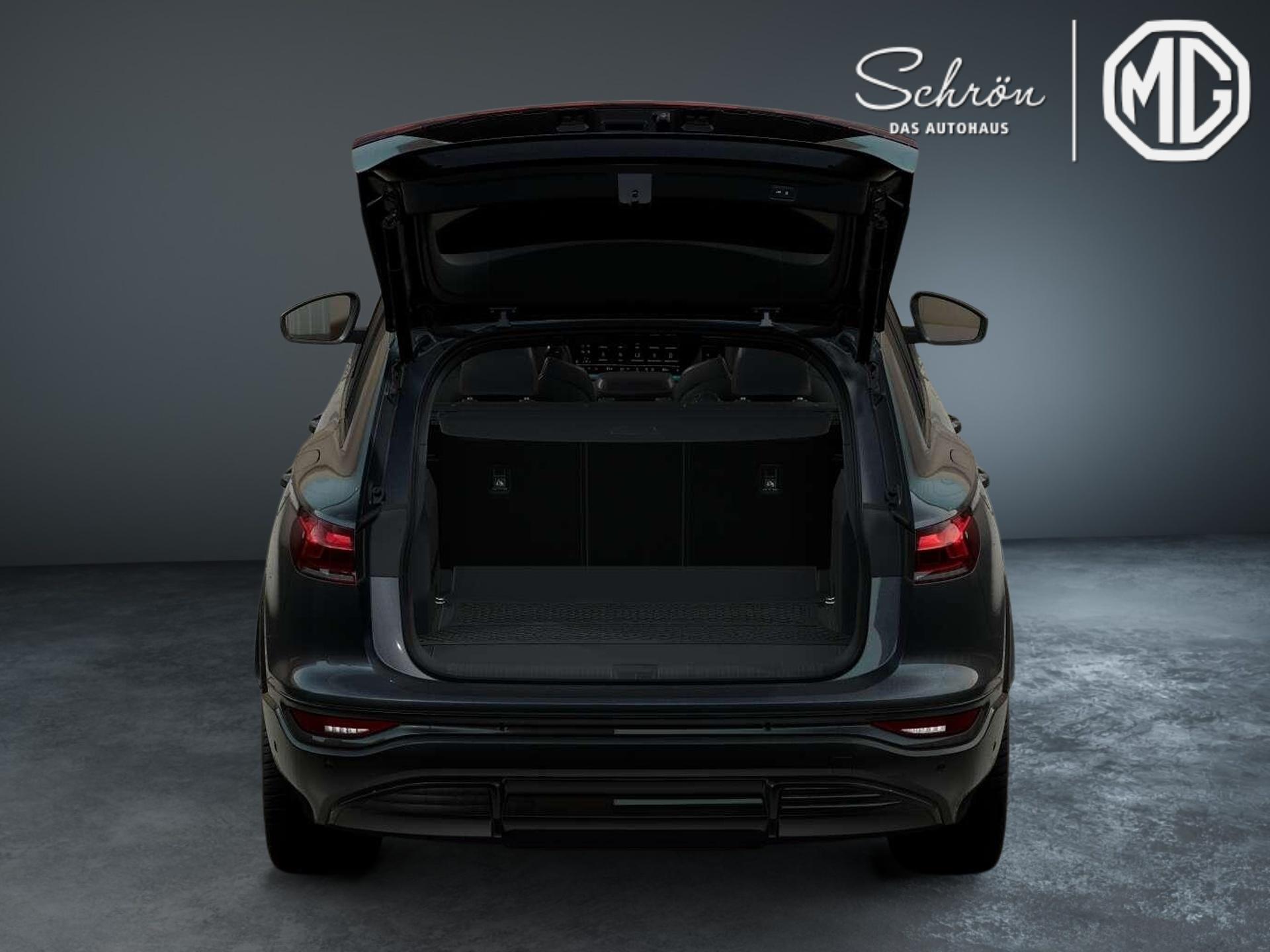 • Komfort: 3-Zonen-Komfortklimaautomatik, Ablenkungs- und Müdigkeitserkennung, Adaptiver Fahrassistent plus, Adaptiver Geschwindigkeitsassistent, Adaptives S-Luftfederfahrwerk, Anschlussgarantie 3 Jahre max. 100.000 km, Audi Application Store und Smartphone-Interface, Audi drive select, Außenspiegel elektrisch einstell-, beheizbar und anklappbar, beidseitig automatisch abblendend, Digitaler Schlüssel, Doppelton-Signalhorn, Einparkhilfe plus mit Distanzanzeige, Elektrische Ladeklappe, e-tron Aufladesystem Kompakt, FOD Funktionen online verfügbar, Garagentoröffner, Gepäckraumklappe elektrisch öffnend und schließend, Halteassistent, Industriestecker CEE 16A, 400V, lang und gerade, für das e-tron Ladesystem, Kamerabasierte Verkehrszeichenerkennung, Komfortschlüssel mit Safelock, Komfort-Standklimatisierung, Ladekabel Mode 3 für öffentliches Laden 22 kW (AC), Lenkradeinstellung elektrisch, Matrix-Funktion, Maximal mögliche Ladeleistung (DC), Parkassistent plus, Schließ-/Startsystem Advanced Key (Komfortschlüssel), Sitzheizung vorn und hinten, Sonnenschutzverglasung abgedunkelt, Spurwechsel- und Ausstiegswarnung, Querverkehrassistent hinten und Abbiegeassistent hinten, Umgebungskameras, Verkehrszeichenbasierter Geschwindigkeitsbegrenzer, Vorbereitung für intelligente Ladefunktionen, Vordersitze elektrisch einstellbar, Wandhalterung Clip