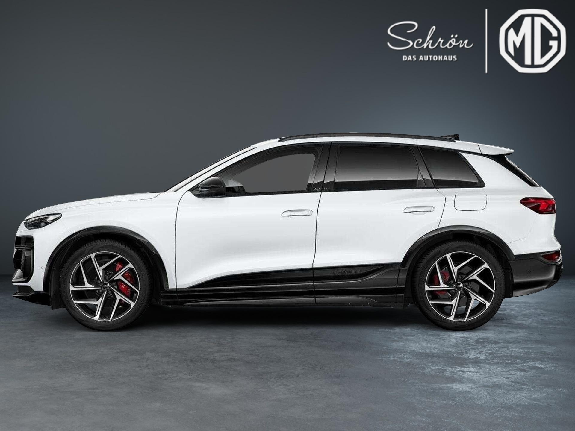 • Komfort: 3-Zonen-Komfortklimaautomatik, Ablenkungs- und Müdigkeitserkennung, Adaptiver Fahrassistent plus, Adaptiver Geschwindigkeitsassistent, Adaptives S-Luftfederfahrwerk, Anschlussgarantie 3 Jahre max. 100.000 km, Audi Application Store und Smartphone-Interface, Audi drive select, Außenspiegel elektrisch einstell-, beheizbar und anklappbar, beidseitig automatisch abblendend, Digitaler Schlüssel, Doppelton-Signalhorn, Einparkhilfe plus mit Distanzanzeige, Elektrische Ladeklappe, e-tron Aufladesystem Kompakt, FOD Funktionen online verfügbar, Garagentoröffner, Gepäckraumklappe elektrisch öffnend und schließend, Halteassistent, Industriestecker CEE 16A, 400V, lang und gerade, für das e-tron Ladesystem, Kamerabasierte Verkehrszeichenerkennung, Komfortschlüssel mit Safelock, Komfort-Standklimatisierung, Ladekabel Mode 3 für öffentliches Laden 22 kW (AC), Lenkradeinstellung elektrisch, Matrix-Funktion, Maximal mögliche Ladeleistung (DC), Parkassistent plus, Schließ-/Startsystem Advanced Key (Komfortschlüssel), Sitzheizung vorn und hinten, Sonnenschutzverglasung abgedunkelt, Spurwechsel- und Ausstiegswarnung, Querverkehrassistent hinten und Abbiegeassistent hinten, Umgebungskameras, Verkehrszeichenbasierter Geschwindigkeitsbegrenzer, Vorbereitung für intelligente Ladefunktionen, Vordersitze elektrisch einstellbar, Wandhalterung Clip