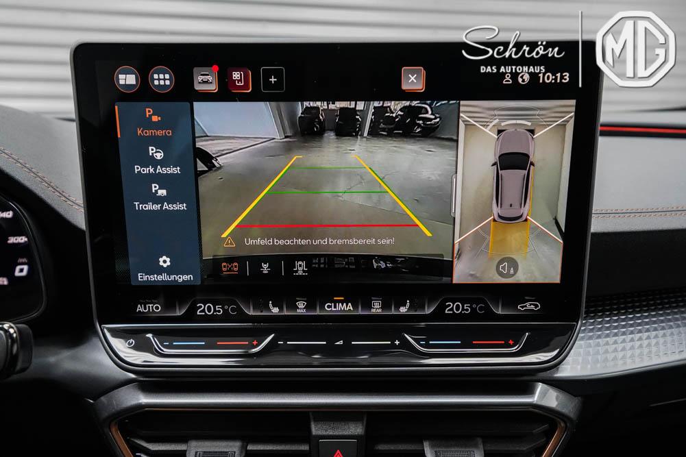 Beifahrersitz höhenverstellbar, Fahrersitz höhenverstellbar, Lederlenkrad, Lendenwirbelstütze vorne, Mittelarmlehne vorne, Gepäckraumabdeckung, Lenkrad höhenverstellbar, Sitzbezug Dinamica, Elektrisch verstellbarer Fahrersitz, Beheizbares Lenkrad, Supersportlenkrad, Isofix, abgedunkelte Scheiben, 19 Zoll Alufelgen Sandstorm Kupfer, Dachreling schwarz, ABS, Alarmanlage, Außenspiegel elektrisch, Fensterheber elektrisch, Kopfairbags, Schiebedach, Seitenairbags, Servolenkung, Sitzheizung, DCC, ESP, Wegfahrsperre, Zentralverriegelung mit Funk, Außenspiegel beheizbar, Beifahrerairbag, Fahrerairbag, Parkpilot hinten, Parkpilot vorne, Reifendruckkontrolle, Digital Cockpit, Anhängekupplung schwenkbar, Tempomat Abstand ACC, Fernlichtassistent, Spurhalteassistent plus, Totwinkelassistent, Verkehrszeichenerkennung, LED Matrix Scheinwerfer, LED-Tagfahrlicht, Intelligent Park-Assistent, Panoramadach, Elektrische Heckklappe inkl. Virtual Pedal, KeylessEntry, StartStopSystem, Notrufsystem, Klimaautomatik 3-Zonen, 360-Grad-Kamera, Android Auto, Apple Carplay, Freisprecheinrichtung, Induktionsladestation, Touchscreen, USB, Radio DAB, Bluetooth, Bordcomputer, Radio-Navigationssystem, Full Link, Stauassistent, Pre-Crash, erweiterte Herstellergarantie 4 Jahre/120.000km,
