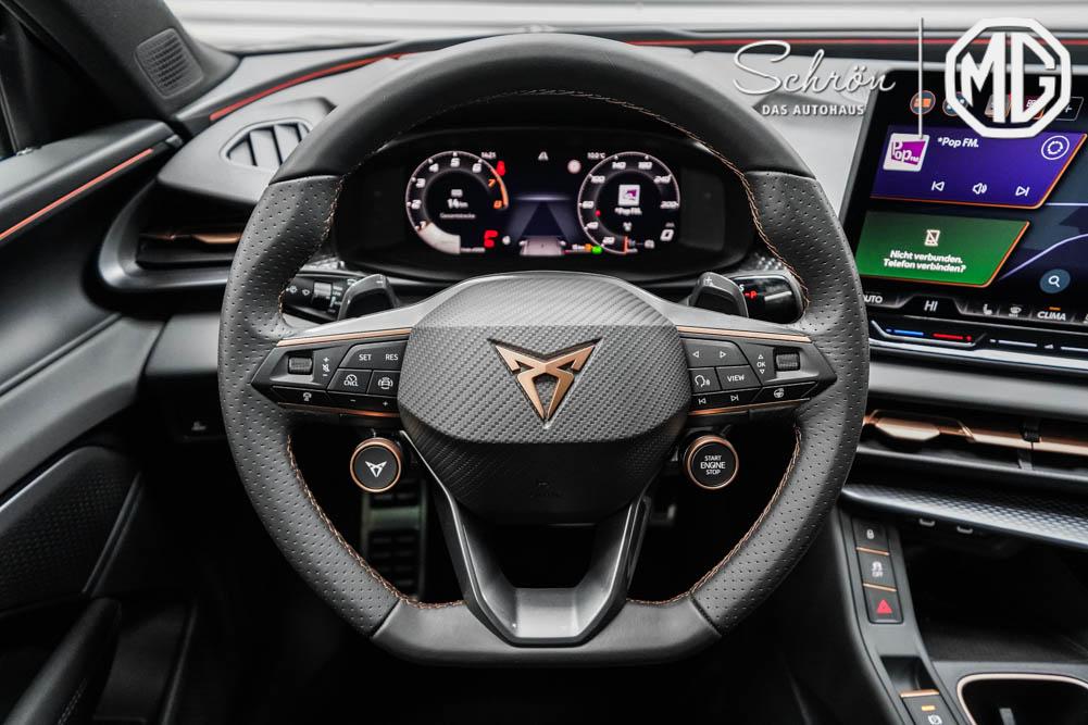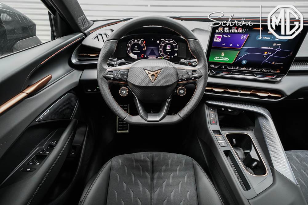 Beifahrersitz höhenverstellbar, Fahrersitz höhenverstellbar, Lederlenkrad, Lendenwirbelstütze, Mittelarmlehne vorne, Sportsitze, Gepäckraumabdeckung, geteilt umklappbare Rücksitzlehne, Lenkrad höhenverstellbar, Sitzbezug Dinamica, Ambiente-Beleuchtung, Elektrisch verstellbarer Fahrersitz mit Memory Funktion, Beheizbares Lenkrad, Multifunktionslenkrad, Isofix, Isofix Beifahrersitz, abgedunkelte Scheiben, 20 Zoll Alufelgen Hadron Kupfer, Dachreling schwarz, Außenspiegel in Wagenfarbe, Stoßfänger in Wagenfarbe, Türgriffe in Wagenfarbe, ABS, Alarmanlage, Außenspiegel elektrisch anklappbar, Fensterheber elektrisch, Kopfairbags, Nebelscheinwerfer, Schiebedach, Seitenairbags, Servolenkung, Sitzheizung, DCC, ESP, Standheizung, Wegfahrsperre, Zentralverriegelung mit Funk, Außenspiegel beheizbar, Beifahrerairbag, Fahrerairbag, Parkpilot hinten, Parkpilot vorne, Reifendruckkontrolle, Head-up Display, Regensensor, Lichtsensor, Digital Cockpit, Tempomat Abstand ACC, Fernlichtassistent, Spurhalteassistent plus, Totwinkelassistent, Verkehrszeichenerkennung, LED Matrix Scheinwerfer, Tagfahrlicht, Pannenset, Rückfahrkamera, Park-Assistent, Panoramadach, Elektrische Heckklappe inkl. Virtual Pedal, KeylessEntry, StartStopSystem, Innenspiegel automatisch abbl., Müdigkeitswarnsystem, Notrufsystem, Schaltwippen, Klimaautomatik 3-Zonen, 360-Grad-Kamera, Geschwindigkeitsbegrenzer, Android Auto, Apple Carplay, Freisprecheinrichtung, Induktionsladestation, Sprachsteuerung, USB, Radio DAB, Bluetooth, Bordcomputer, Radio-Navigationssystem, IMMERSIVE by Sennheiser, variabler Ladeboden, Full Link, AHK Vorbereitung, erweiterte Herstellergarantie 5 Jahre/100.000km, Schalensitze vorn, Exit Assist,