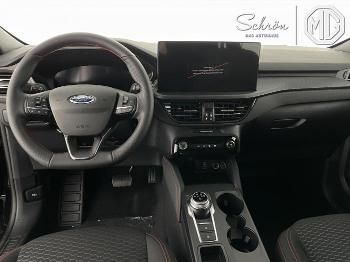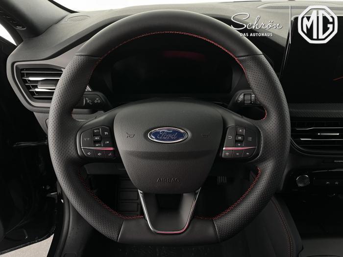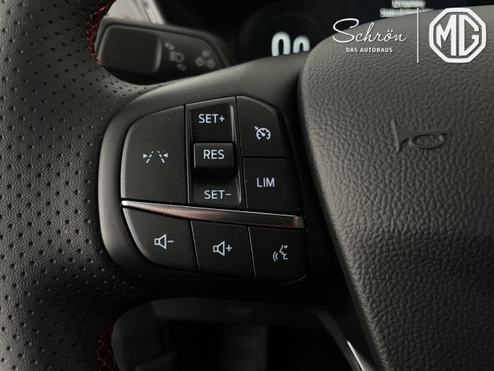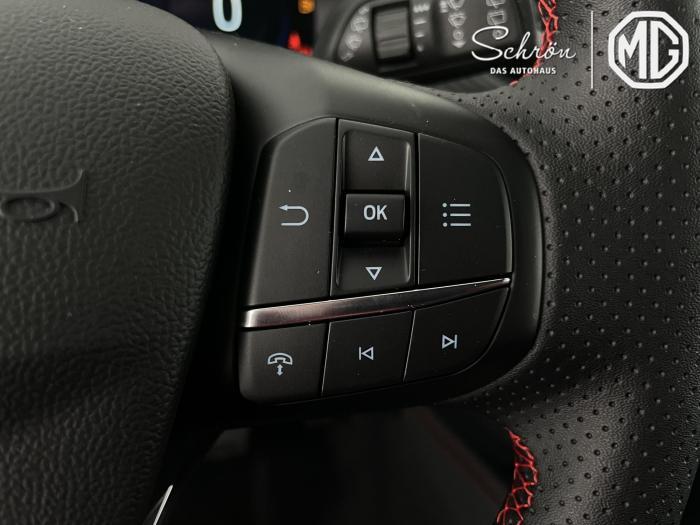 DAB/DAB+ (Digital Audio Broadcasting), Ford SYNC 4 inkl. Ford Navigationssystem, Induktive Ladestation für mobile Endgeräte, USB-Anschluss, Ambientebeleuchtung vorn, LED-Rückleuchten, LED-Scheinwerfer, Seitenscheiben ab 2. Sitzreihe und Heckscheibe dunkel getönt, Dachhimmel aus Webstoff, Schwarz, Lenkrad, ST-Line-Design, unten abgeflacht und mit roten Ziernähten, Sensico in Leder-Optik, Lenkrad, beheizbar, Mittelkonsole vorn mit integrierter Armauflage, Frontscheibe, beheizbar, Klimaanlage mit automatischer Temperaturkontrolle, für Fahrer und Beifahrer getrennt regelbar (2-Zonen-Klimaautomatik), Winter-Paket (Vordersitze, beheizbar / Frontscheibe, beheizbar / Lenkrad, beheizbar / Äußere Rücksitze, beheizbar), 18, Leichtmetallräder 5-Speichen-Design in Rock Metallic, Notrad, Frontairbag für Fahrer und Beifahrer, Kopf-und Schulterairbags vorne und hinten, eCall, Vordersitze, beheizbar, Vordersitze, manuell einstellbar inkl. manuell einstellbarer Lendenwirbelstütze, Äußere Rücksitze, beheizbar, Ford Protect Garantie-Schutzbrief, für das 3. bis 5. Jahr bis max. 100.000km, 12-Volt-Anschluss im Gepäckraum, Fahrspur-Assistent inkl. Fahrspurhalte-Assistent, Fernlicht-Assistent [#07] , Feststellbremse, elektrisch mit Auto Hold-Funktion, Ford Key Free-System, Geschwindigkeitsregelanlage, Park-Pilot-System, vorn und hinten, Reifendruckkontrollsystem (TPMS), Rückfahrkamera, Scheibenwischer mit Regensensor, Selektiver Fahrmodus-Schalter (Normal, Sport, Eco, Rutschig und unbefestigte Straßen), Umstellung Infotainment / Bordcomputer auf DE, Verkehrsschild-Erkennungssystem [#C8] , Anhängevorrichtungs-Vorbereitungs-Set, Außenspiegel in Wagenfarbe lackiert, EU-Fahrzeug mit Tageszulassung