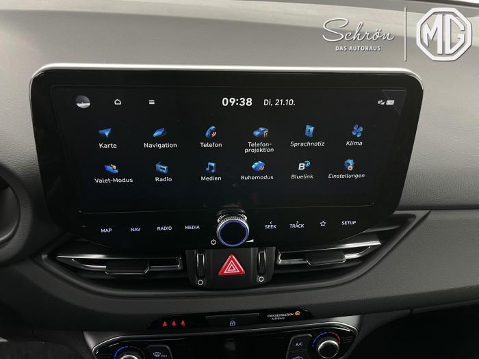 Android Auto, Apple CarPlay, Bluetooth, Navigationssystem 10,25'', Sprachsteuerung, USB-Anschluss, Bi-LED-Scheinwerfer, LED Tagfahrlicht, LED-Rückleuchten, Lichtsensor, Nebelscheinwerfer, Elektrische Fensterhebern vorn und hinten, Getönte Scheiben, Dachhimmel in Schwarz, Gepäcktrennnetz, Lenkradheizung, Mittelarmlehne vorn und hinten, Spiegel automatisch abblendbar, Sport - Multifunktionslenkrad, Sport-Pedale in Edelstahl, Automatische Zweizonen - Klimaregelung , 18'' Alufelgen der Größe 225/40 R18, Alarmanlage, Elektrische Parkbremse mit AutoHold, Fahrer- und Beifahrerairbag, ISOFIX + TopTether, Vorder- und Seitenaribags, Beifahrersitz höhenverstellbar, Fahrersitz höhenverstellbar, Fahrersitz mit elektrischer Lendenwirbelstütze, Vordersitze beheizbar, Hyundai Garantie 5 Jahre, Aktiver Spurfolgeassistent LFA, Autonomer Notbremsassistent, Fahrprofilauswahl, Frontkollisionswarner mit Fußgänger-/Fahrradfahrererken-nung FCA, Intelligente Geschwindigkeitsassistent ISLA, Park Distance Control vorne und hinten, Reifendruck-Kontrollsystem, Rückfahrkamera, Spurhalteassistent LKA, Tempomat, Zentralverriegelung mit Fernbedienung, [ISLA] adaptive Geschwindigkeitsregelanlage, Start/Stopp-Automatik, Außenspiegel elektrisch anklappbar, Außenspiegel elektrisch beheizbar, Außenspiegel elektrisch einstellbar, Außenspiegelgehäuse in Schwarz, Dachreling, EU-Fahrzeug mit Tageszulassung