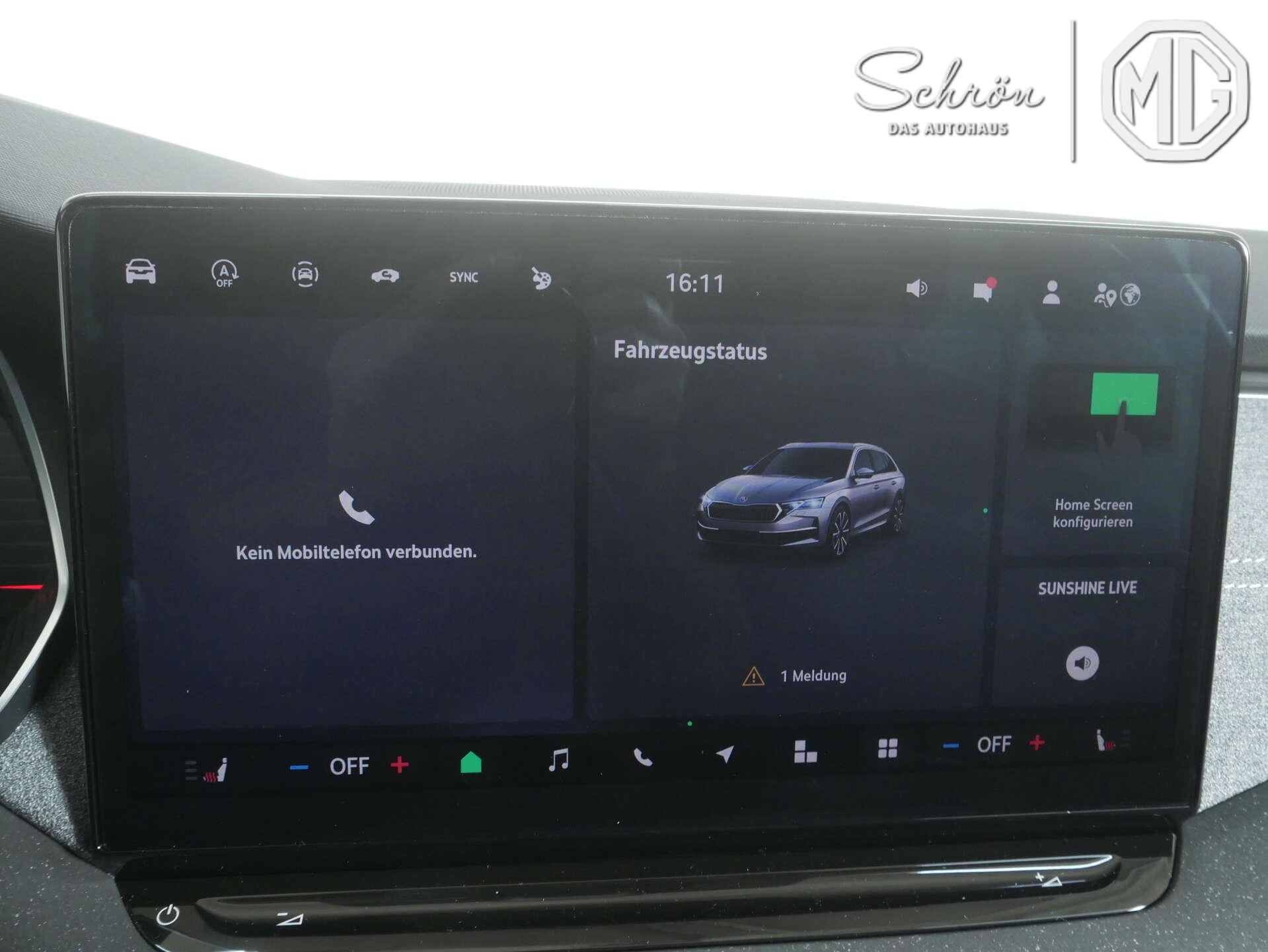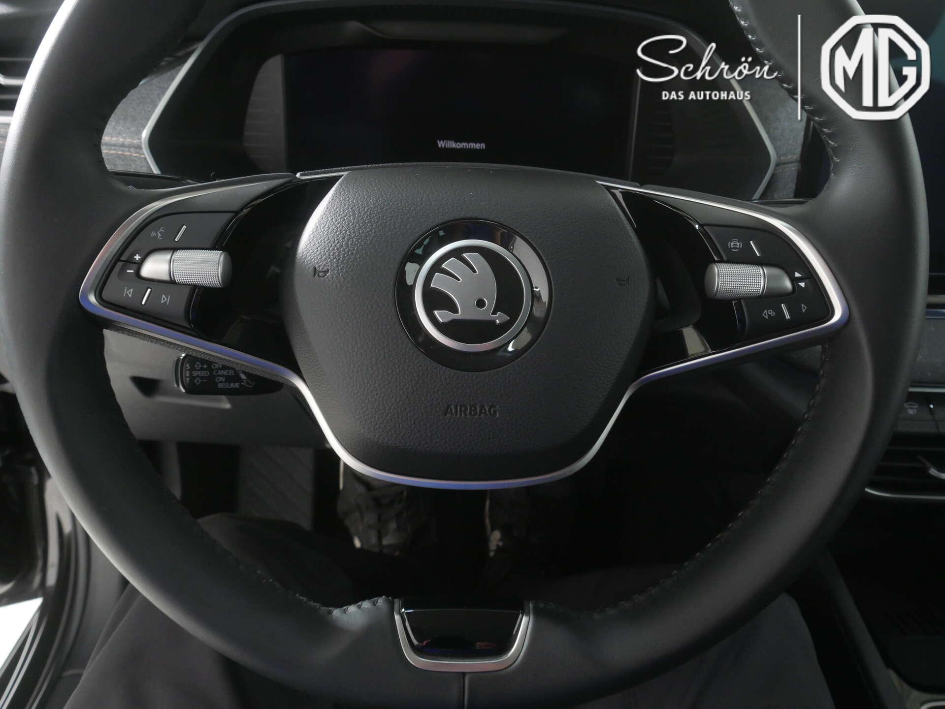 • Sicherheit: "FRONT ASSIST" - mit Warnen und Bremsen auf Fahrzeuge, Fu~g{nger und Radfahrer, 3-Punkt-Sicherheitsgurte hinten, Abbiege und Allwetterlicht, Adaptiver Abstandsassistent ACC (Regelbereich bis 210 km/h), Bremskraftverstärker, Dreipunkt-Automatiksicherheitsgurt für mittleren Rücksitzplatz, Elektronische Quer-Differenzialsperre (XDS+), Elektronische Wegfahrsperre, Fahrer- und Beifahrerairbag sowie Knieairbag auf Fahrerseite und Beifahrerairbag-Deaktivierung, Fahrlichtassistent (Easy Light Assist), Geschwindigkeitsabhängige Servolenkung, ISOFIX-Verankerung auf dem Beifahrersitzund den äußeren Rücksitzen inklusive Top-Tether, Lane Assist mit adaptiver Spurführung, LED-Heckleuchten in Kristallglasoptik, Manuelle Kindersicherung der hinteren Türen, Notruffunktion eCall+, Regensensor, Reifendrucküberwachung, Reifenmobilitätsset (Reifenpannenspray inklusive Kompressor), Reifen-Reparaturkit, Scheinwerferreinigungsanlage inklusive Waschwasserstandskontrolle, Seitenairbags vorn sowie Center-Airbag und Kopfairbags, Sicherheitsleuchten in den Seitentüren vorn