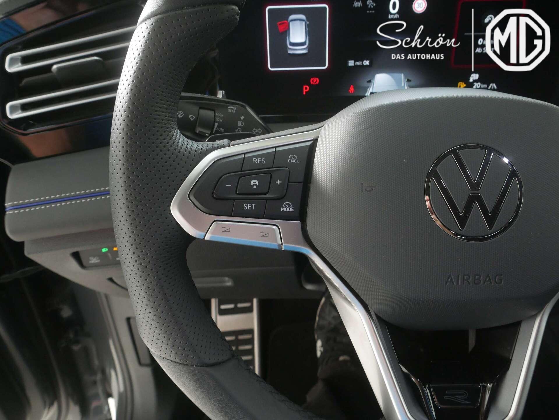 • Interieur: 12-V-Steckdose im Gepäckraum, 2 USB-C-Schnittstellen vorn, 2 USB-C-Ladebuchsen an der Mittelkonsole hinten Ladeleistung bis zu 45 W, 3 Kopfstützen hinten, Ambientebeleuchtung 30-farbig, in der Instrumententafel sowie in den Türen Dekoreinlagen vorn durchleuchtet, Bordwerkzeug, Dachhimmel schwarz, Dekor-Set "R-Line", durchleuchtet, Digital Cockpit Pro, mehrfarbig, verschiedene Info-Profile wählbar, Einstiegsleisten vorn in Aluminium, Gepäckraumboden in 2 Höhen einstellbar, für ebene Ladefläche, Infotainment-System mit 32,7-cm-Display (12,9 Zoll), Innenspiegel automatisch abblendend, Kopfstützen vorn im Sitz integriert, Lendenwirbelstützen vorn pneumatisch einstellbar, Make-up-Spiegel beleuchtet in den Sonnenblenden, Mittelarmlehne vorn, Mittelkonsole gepolstert, Multifunktions-Sportlenkrad in Leder, beheizbar, mit Schaltwippen, Netztrennwand, Pedale in Edelstahl gebürstet, Rücksitzbank längs verschiebbar, -lehne asymmetrisch geteilt umklappbar, Neigung einstellbar mit Durchlademöglichkeit, Sicherheitsgurte hinten außen mit Gurtstraffer, Sitzmittelbahnen der Vordersitze und der äußeren Rücksitzplätze in Stoff "R-Line", Spiegeleinstell- und Fensterheberschalter mit Applikationen in Chrom-Optik, Sport-Komfortsitze vorn, Vordersitze höheneinstellbar, ergoActive-Sitz auf der Fahrerseite, Vordersitze mit Massagefunktion, Winterpaket inkl. Lenkrad beheizbar