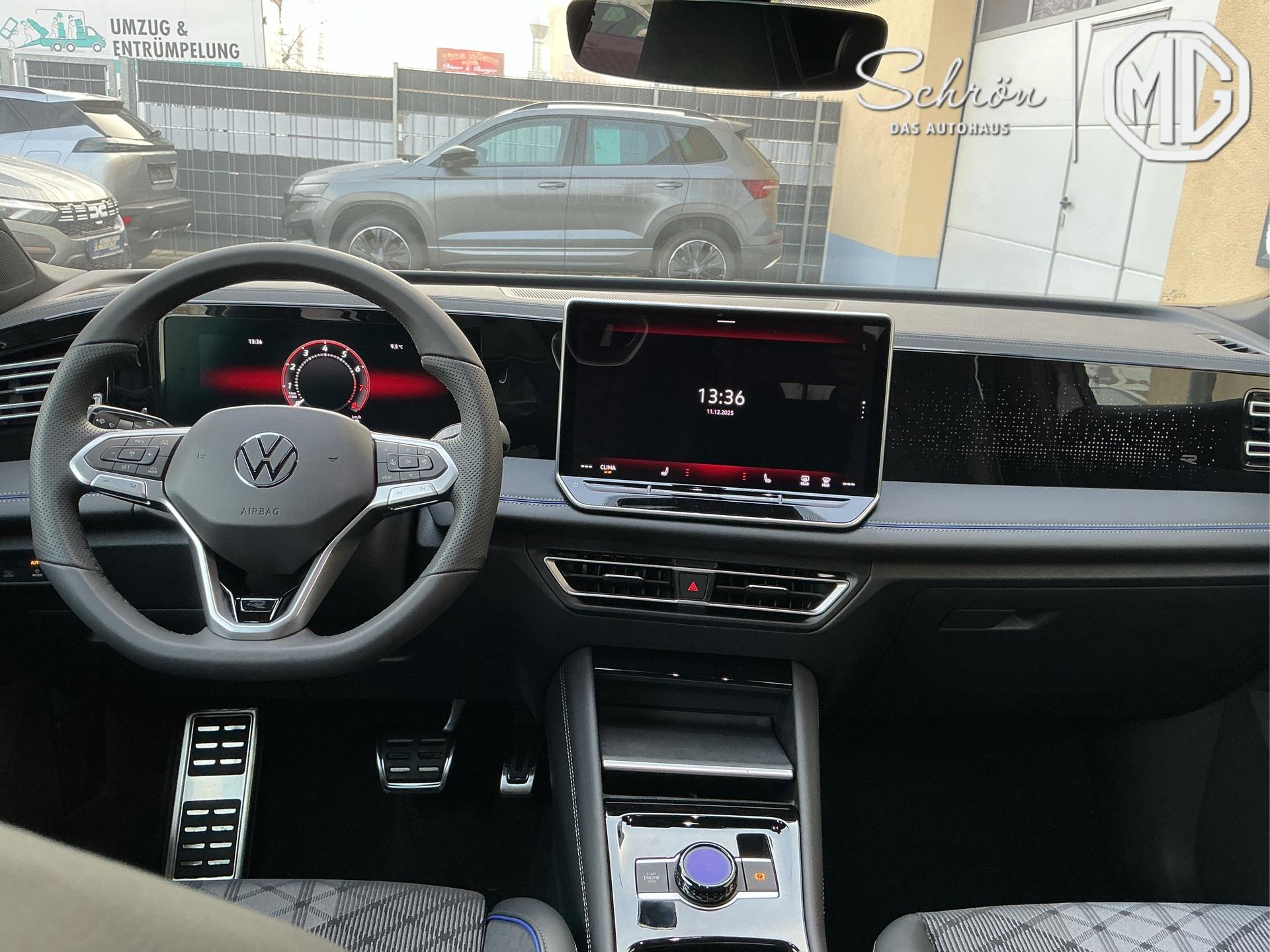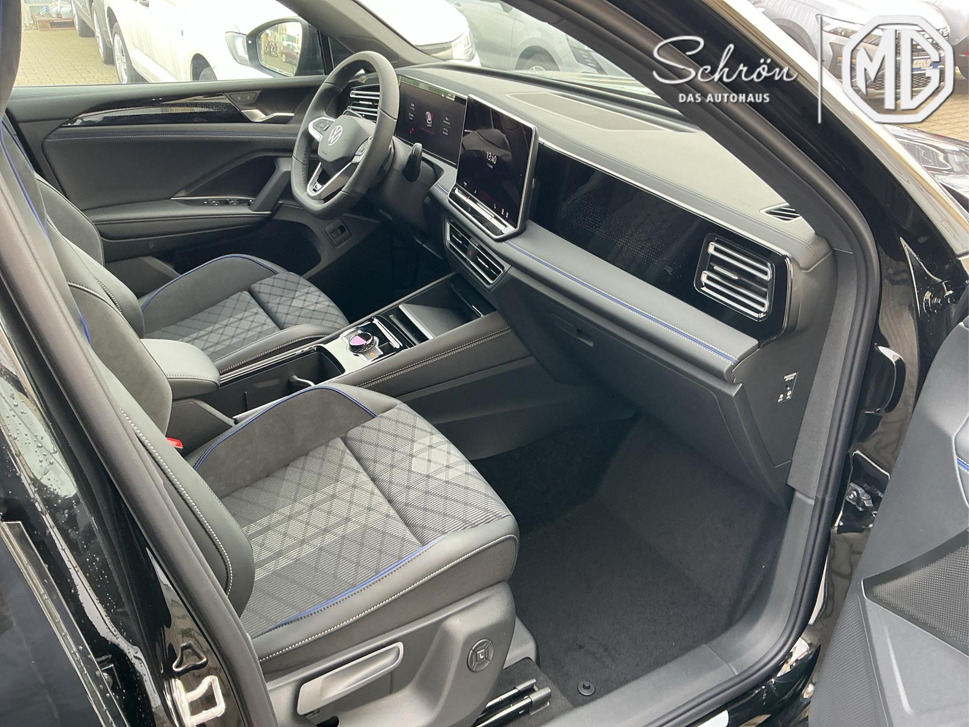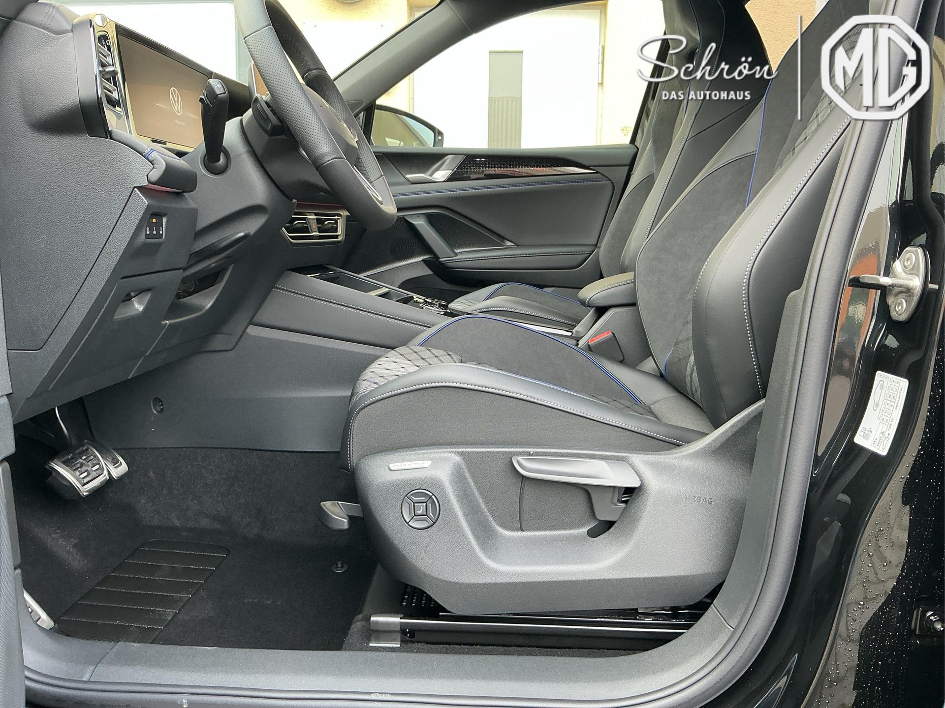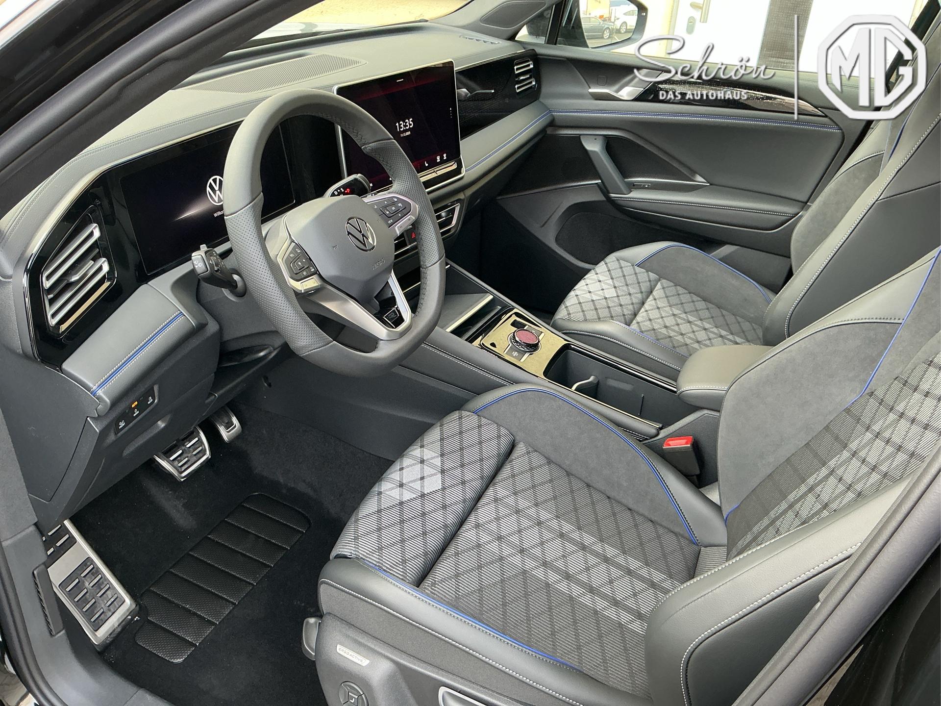 Innenausstattung [ZN] R-Line Sportsitze mit integrierter Kopfstütze in Schwarz mit blauer Kontur, Sitzmittelbahnen der Vordersitze und der äußeren Rücksitzplätze in Stoff, Sitzwangen in Art Velours (Sitze: Soul-Schwarz,Instrumententafel: Soul-Schwarz,Teppich: Schwar