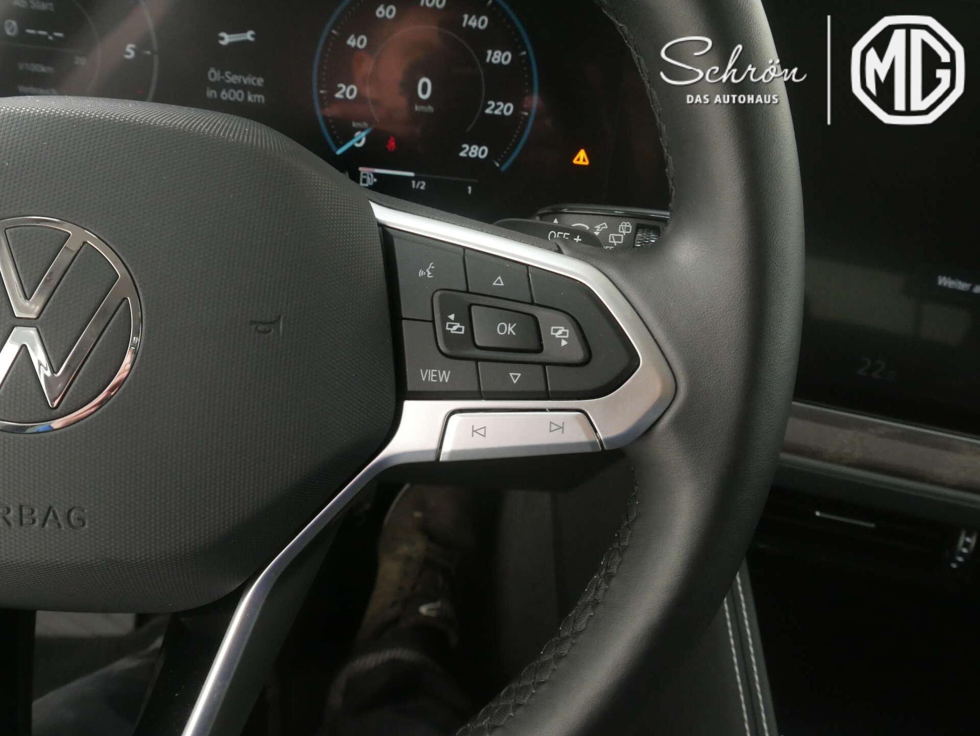 • Komfort: Ablenkungs- und Müdigkeitserkennung, Active Info Display, mehrfarbig, verschiedene Info-Profile wählbar, Automatische Distanzregelung ACC "stop &go", mit Geschwindigkeitsbegrenzer, Bordwerkzeug, Dynamischer Fernlichtassistent "Dynamic Light Assist", Elektronische Parkbremse, Fahrprofilauswahl, Frontscheibe in Verbundsicherheitsglas, wärme- und geräuschdämmend, beheizbar, Heckklappe mit elektrischer Öffnung und Schließung, IQ.LIGHT - HD-Matrix-Scheinwerfer mit Schlechtwetterlicht, Begrüßungs- und Verabschiedungslicht, Klimaanlage "Air Care Climatronic" mit Aktiv-Kombifilter,4-Zonen-Klimatisierungund Bedienelementen hinten, Luftfederung mit automatischer Niveauregelung, Höheneinstellung und elektronischer Dämpferregelung, Multifunktionskamera, Online-Dienst, mit OCU, mit Head Unit Codierung, ohne WFS-Verbund, Parklenkassistent "Park Assist" inkl. Einparkhilfe, Rückfahrkamera "Rear View", Schlüsselloses Startsystem "Keyless Start" ohne SAFE-Verriegelung, Seitenscheiben hinten und Heckscheibe abgedunkelt, Verkehrszeichenerkennung, Vorbereitet für "VW Connect" und "VW Connect Plus", Vordersitze beheizbar, Vordersitze elektrisch einstellbar, mit längs verschiebbarer Oberschenkelauflagesowie Fahrersitz mit Memory-Funktion, Zuziehhilfe für Heckklappe