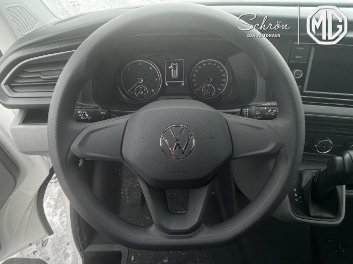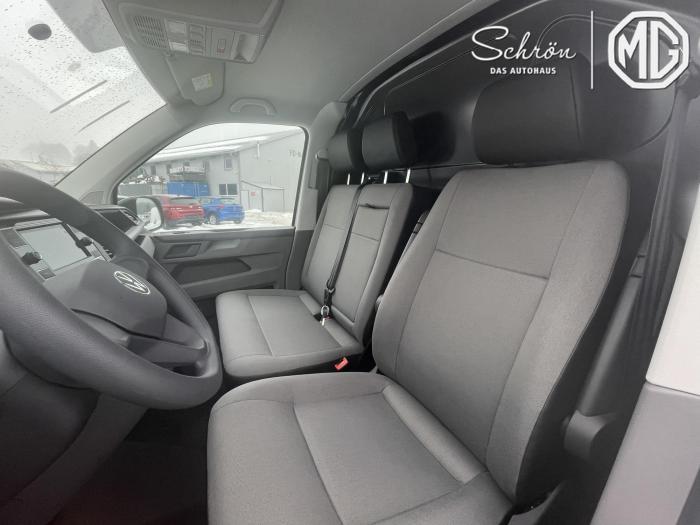 2 USB-Schnittstellen (Typ C) in der Armaturentafel, App-Connect, Mobiltelefon-Schnittstelle, Radio Composition Colour, Vorbereitet für We Connect und We Connect Plus, H7-Halogendoppelscheinwerfer, Innenraumbeleuchtung im Lade-/Fahrgastraum, Tagfahrlicht (im Fahrbetrieb dauernd eingeschaltet), Verbundglas-Frontscheibe in Wärmeschutzverglasung, Wärmeschutzglas (grün), Armlehnen für linken Sitz im Fahrerhaus, Gummibodenbelag im Fahrerhaus, Handschuhfach mit Beleuchtung, Hohe Trennwand ohne Fenster sowie 8 Verzurrösen zur Ladegutsicherung, Komforthimmel im Fahrerhaus, Dachinnenverkleidung aus Hartfaserplatte im Fahrgast-/Laderaum, Nichtraucherausführung, Seitenverkleidung (halbhoch) aus Hartfaserplatten im Laderaum, Verzurrösen zur Ladegutsicherung, verstärkt (ISO 27956), Klimaanlage mit manueller Regelung im Fahrerhaus, 16 Stahlräder, Stahl-Reserverad mit Fahrbereifung, Airbags für Fahrer und Beifahrer, mit Beifahrer-Airbag-Deaktivierung, Elektronisches Stabilisierungsprogramm, ABS, ASR, EDS und Bremsassistent, Notrufsystem eCall, Servolenkung elektromechanisch, geschwindigkeitsabhängig geregelt, Lenksäule höhen- und längenverstellbar, Wegfahrsperre (elektronisch), Beifahrerdoppelsitzbank rechts, mit abschließbarem Fach im Sitzkasten und ausklappbarem Ablagefach (Rückenlehne), Höheneinstellung für linken Einzelsitz im Fahrerhaus, Lendenwirbelstütze für linken Einzelsitz in der 1.Sitzreihe (manuell einstellbar), Robuststoffsitzbezüge, Dessin Robusta im Fahrerhaus Kunstleder, Dessin Mesh für vorh. Sitze im Fahrgastraum, 1 12-Volt-Steckdose in der Armaturentafel, 16-Fahrwerk mit 16-Bremsanlage, 2 Funkklappschlüssel, Anhängerrangierassistent mit ParkPilot, Parklenkassistent, Flankenschutz und Rückfahrkamera (dynamische Linien), Berganfahrassistent, Manuelle DPF-Standregeneration, Multifunktionsanzeige Plus mit Müdigkeitserkennung, Müdigkeitserkennung, Seitenwindassistent, Zentralverriegelung mit Funkfernbedienung und Innenbetätigung, Abgasnorm Euro 6d ISC-FCM, Start-Stopp-System mit Bremsenergie-Rückgewinnung, 2. Batterie (75 Ah, AGM) mit Trennrelais und Batterieüberwachung, Anhängevorrichtung, starr (inkl. Gespannstabilisierung), Außenspiegel, elektrisch einstell-, beheiz- und anklappbar, inklusive Anklappfunktion über Fahrzeugschlüssel, Heckklappe ohne Fensterausschnitt, Kraftstofftank mit 80 l Tankvolumen, Kühlerschutzgitter, unlackiert, mit zwei Chromleisten, Normaldach (mit Befestigungspunkten für Dachträgersysteme: 8 beim kurzen Radstand, 10 beim langen Radstand), Schiebetür rechts, im Lade-/Fahrgastraum, Schriftzug Transporter am Kotflügel und am Heck, Zulässiges Gesamtgewicht 3.200 kg mit verstärkten 16-Stahlrädern, EU-Fahrzeug mit Tageszulassung